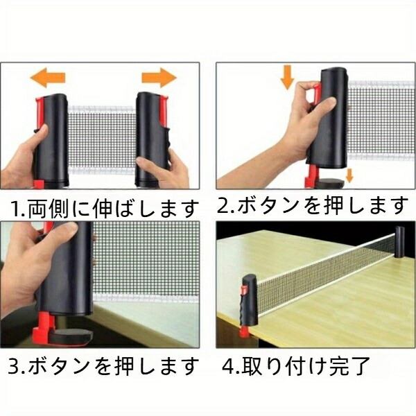 無料送料リトラクタブルネット付きのポー 卓球 卓球セット 超目玉商品 ブラック ブルー オレンジ グレー