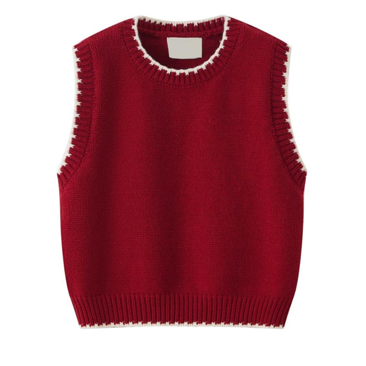 クルーネック重ね着コーデベストプルオー トップス ベスト 豊富な品揃え レッド グレー ネイビー S M L XL
