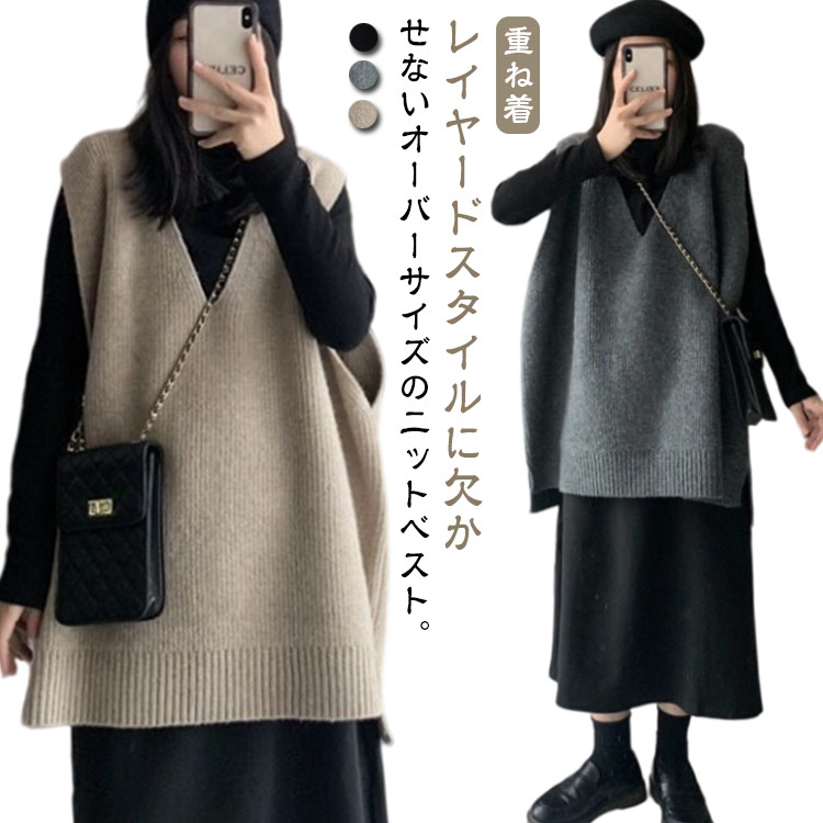 ノースリーブニットベストニットトップス トップス ベスト 早い者勝ち ベージュ グレー ブラック