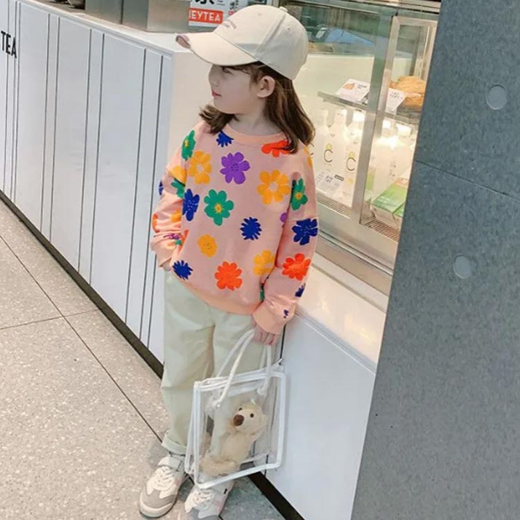 花柄キッズトレーナー子供服スウェット韓 キッズ ベビー マタニティ 早い者勝ち ベージュ ピンク 90 100 110 120 130 140 150