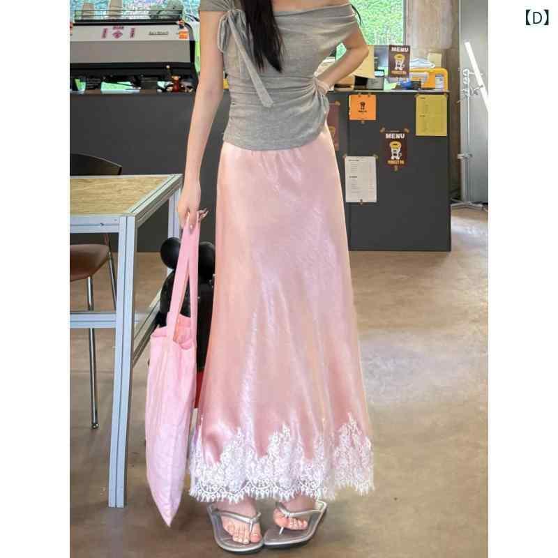 スカート レディース 春夏 レース A レディースファッション 人気 A:青【白花縁】 B:黒【黒花縁】 C:白【白花縁】 D:ピンク【白花縁】 E:黒【白花縁】 S M L XL