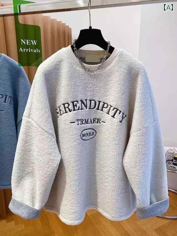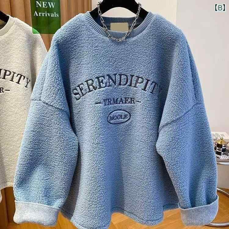 スウェット レディース 韓国風 トップ トップス スウェット トレーナー 人気 A:アプリコット B:青 M L XL 2XL 3XL 4XL