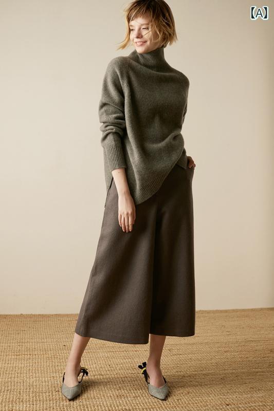 ニット レディース 羊毛 高島ネック トップス ニット セーター セーター 豊富な品揃え A:グレー B:焦げ茶 C:ラクダ S M L