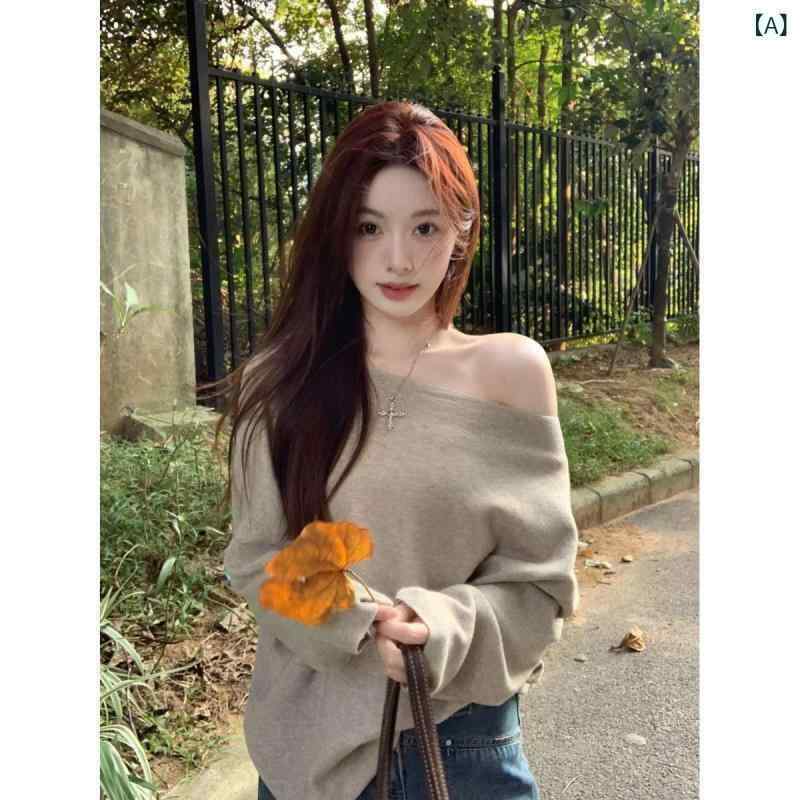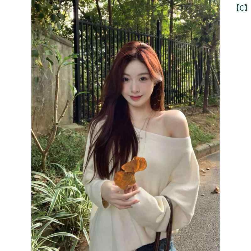 ニット レディース 一字領 長袖 ゆっ レディースファッション 通販 A:オーツ麦 B:ワインレッド C:アプリコット D:黒