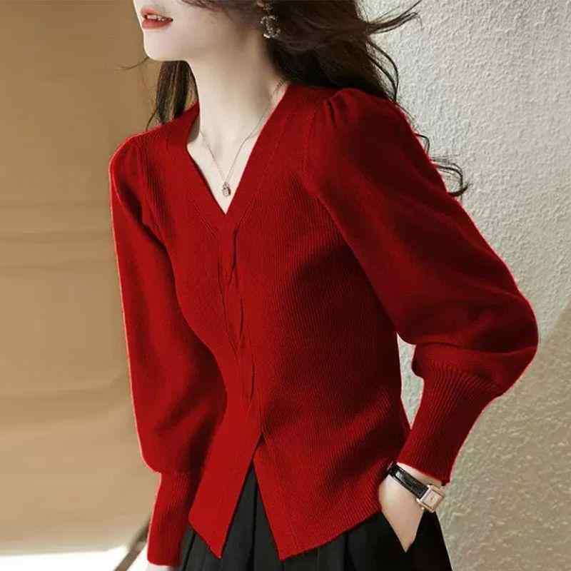 ニット レディース Vネック トップス レディースファッション 早い者勝ち A:赤 B:アイボリー C:黒