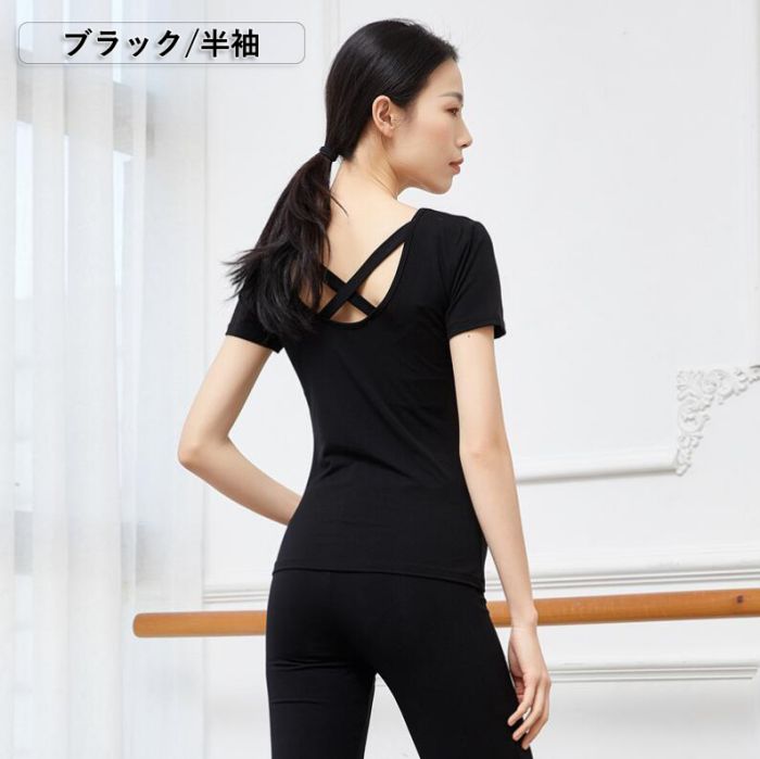 ダンス トップス モダール ヨガ バレ 長袖 5分袖 半袖 ブラック ワインレッド
