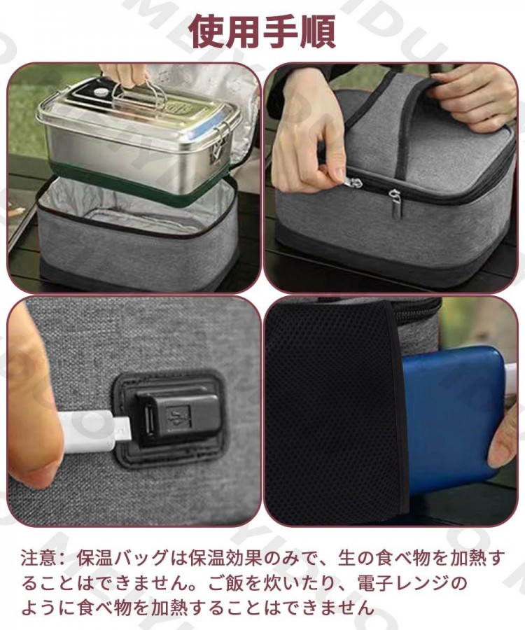 ランチバッグ 加熱 保温バッグ 電気保 弁当箱 水筒 子供用弁当箱 水筒 お弁当箱 お弁当袋 お弁当袋 人気 グレー レッド