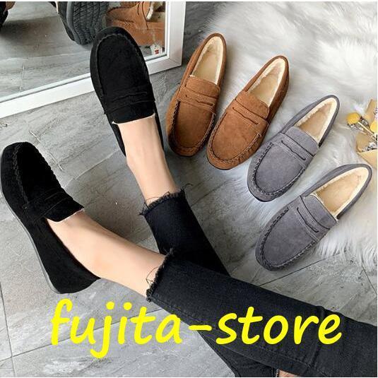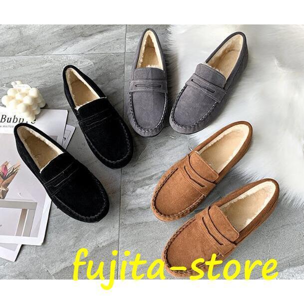 ムートン ボア モカシン シューズ あ レディースファッション 超目玉商品 ブラック グレー ブラウン 35(22.5cm) 36(23cm) 37(23.5cm) 38(24cm) 39(24.5cm) 40(25cm)