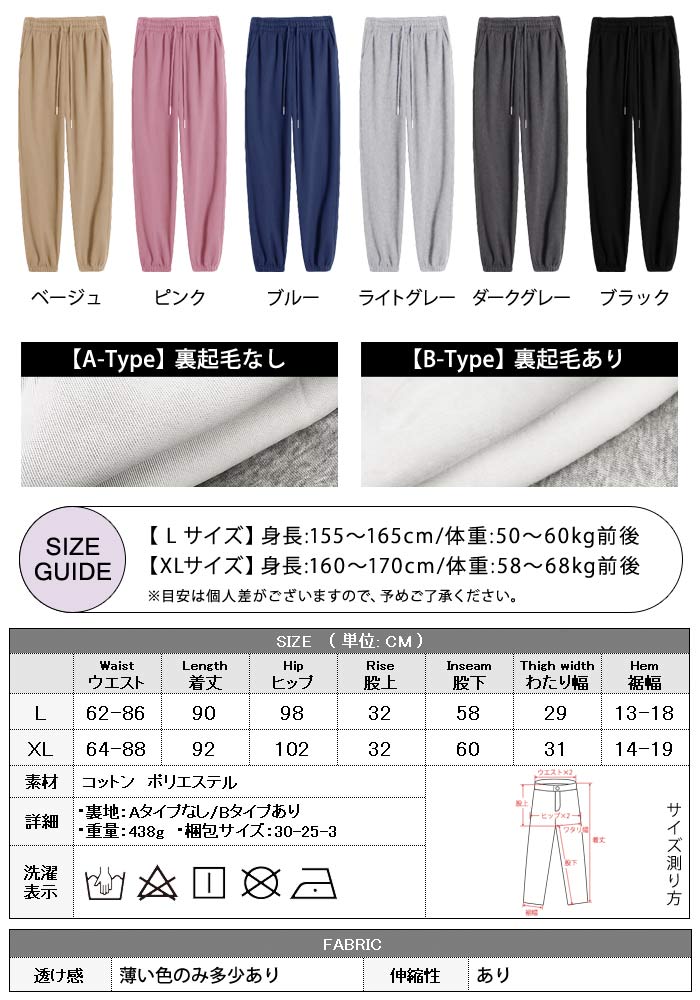 裏起毛 ジョガーパンツ リラックス ス ボトムス パンツ 超目玉商品 Aタイプ Bタイプ ベージュ(Lサイズ) ベージュ(XLサイズ) ピンク(Lサイズ) ピンク(XLサイズ) ブルー(Lサイズ) ブルー(XLサイズ) ライトグレー(Lサイズ) ライトグレー(XLサイズ) ダークグレー(Lサイズ) ダークグレー(XLサイズ) ブラック(Lサイズ) ブラック(XLサイズ)