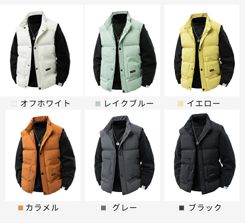 中綿ベスト 中綿ブルゾン アウター 中 メンズファッション 豊富な品揃え ブラック グレー カラメル オフホワイト イエロー レイクブルー M L XL 2XL 3XL 4XL