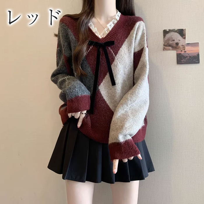 プルオーバー セーター トレーナー ト レディースファッション 早い者勝ち レッド グレー