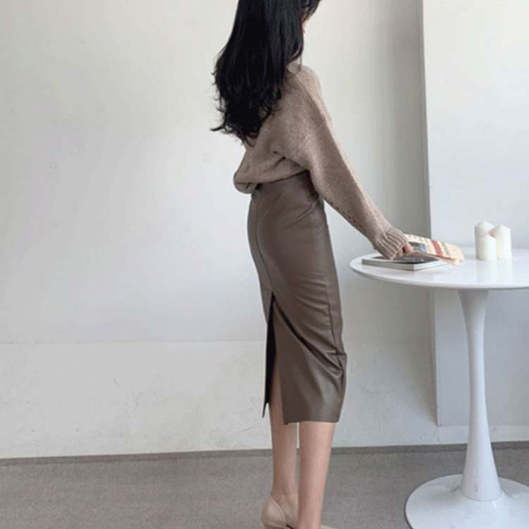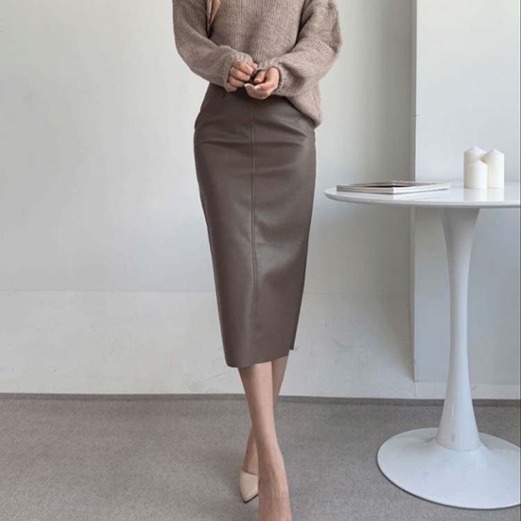 ミディアム丈 ペンシルスカート フェイ ボトムス スカート 通販 モカ ブラック S M L XL 2XL