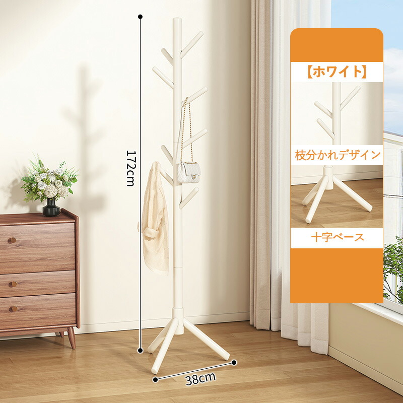 ポールハンガー コート掛け 新型枝型フ 原木色 クルミ色 ホワイト フック6個 フック8個