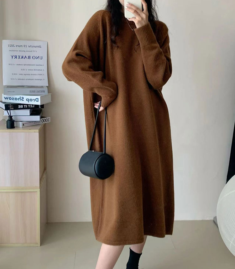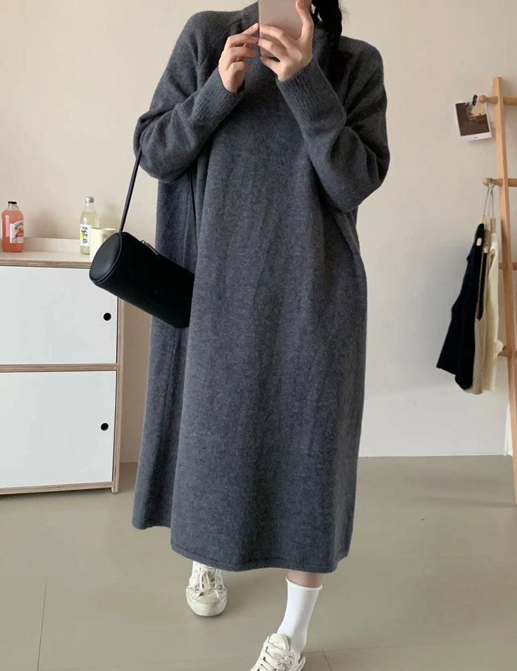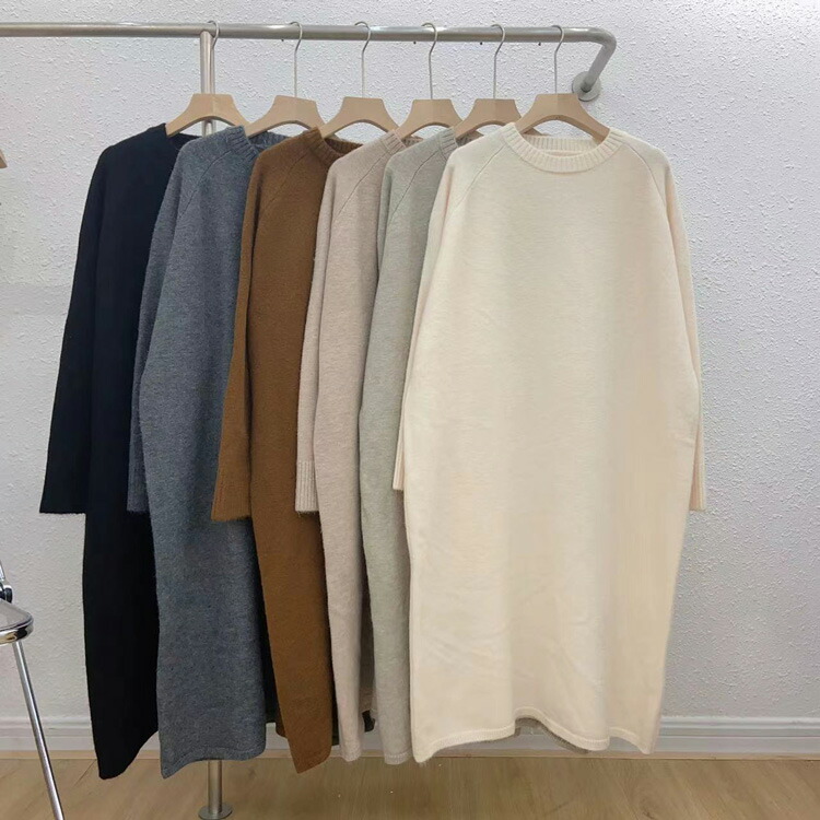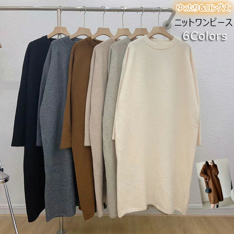 ワンピース クルーネック ニットワンピ ワンピース 新登場! ブラック ブラウン グレー アイボリー ベージュ グレージュ