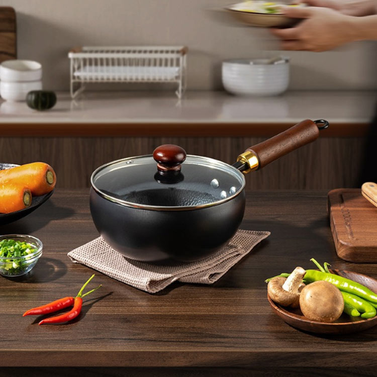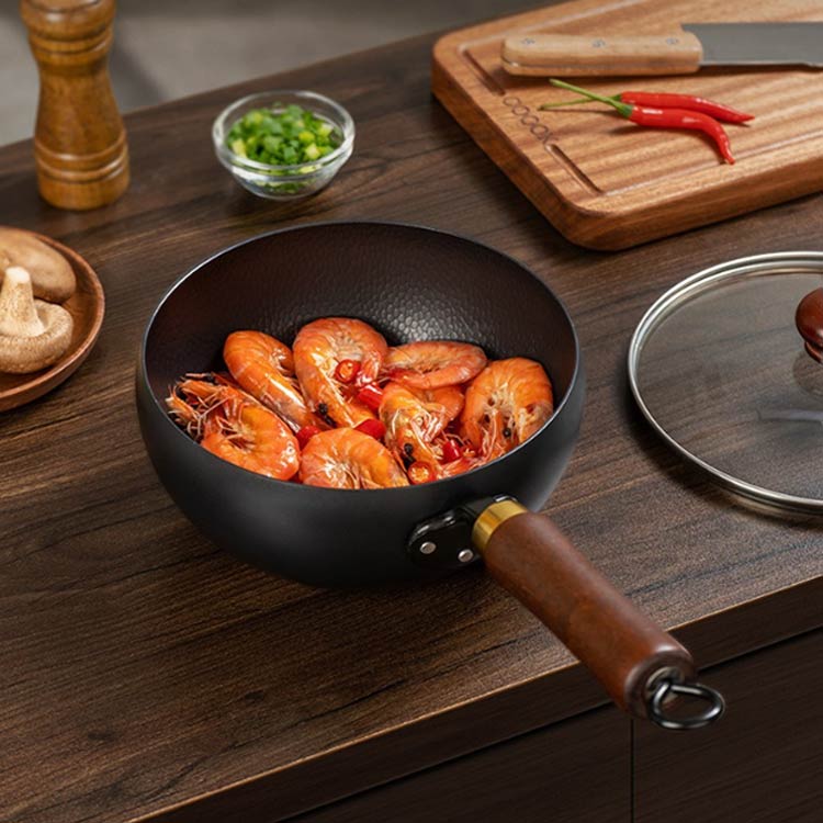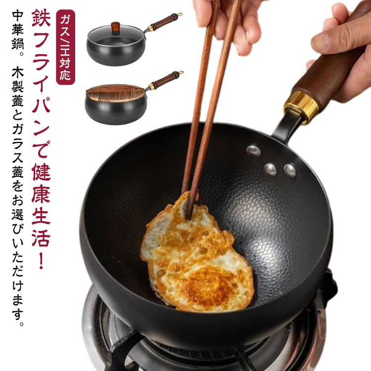 木柄 鉄鍋 無塗装 24cm 伝統鉄鍋 鍋+ガラス蓋 鍋+木製蓋