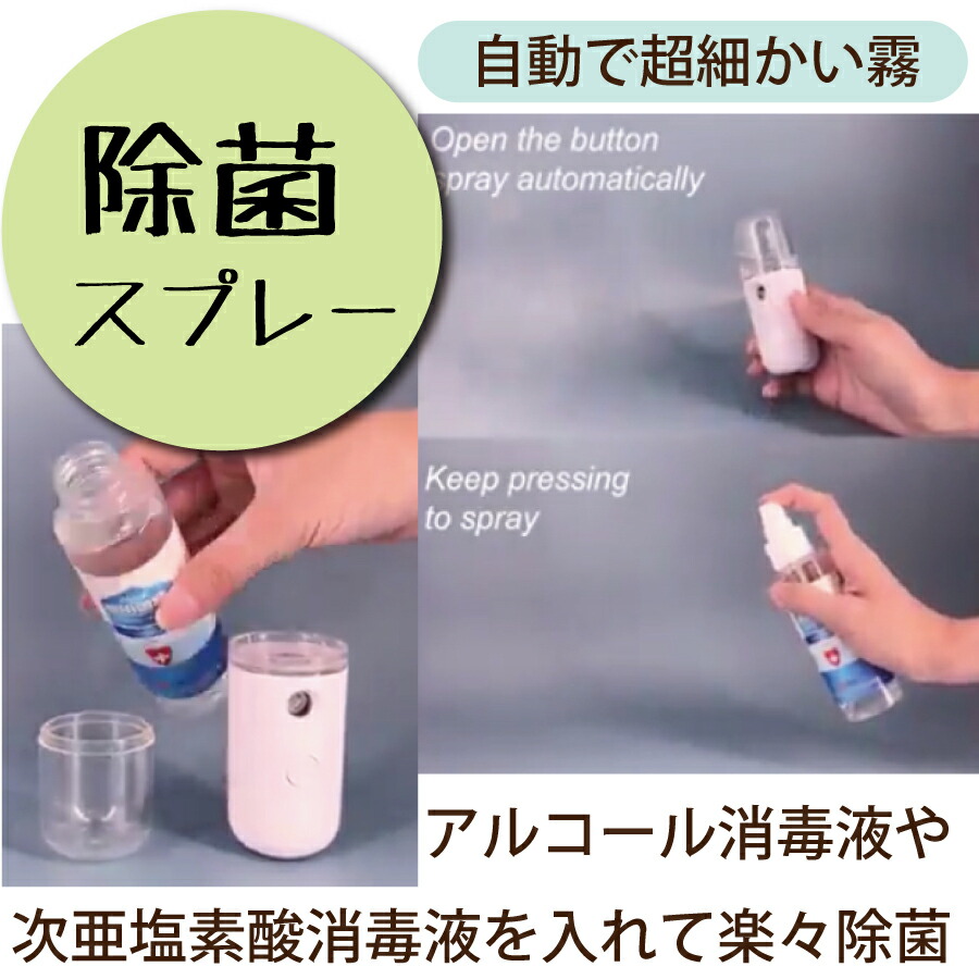 クーポン USB 充電 ナノ ミスト スプレー ミニ ボトル 超音波 加湿器 アロマ ディフューザー 霧化器 除菌 次亜塩素酸 アルコール消毒液 30ml コードレス かわいい 小型 保湿 肌 携帯