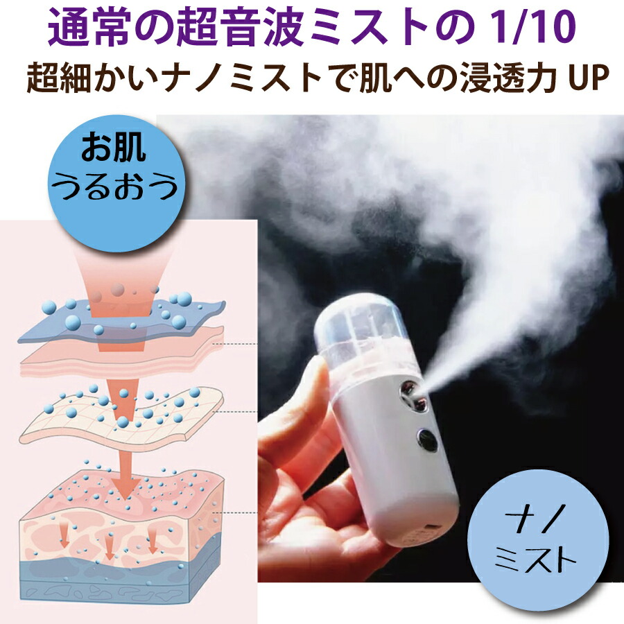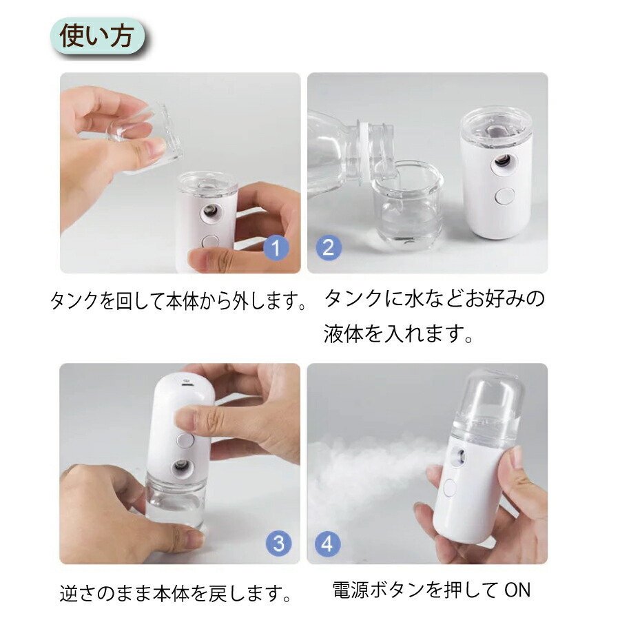クーポン USB 充電 ナノ ミスト ブルー ライトピンク ホワイト ブラック