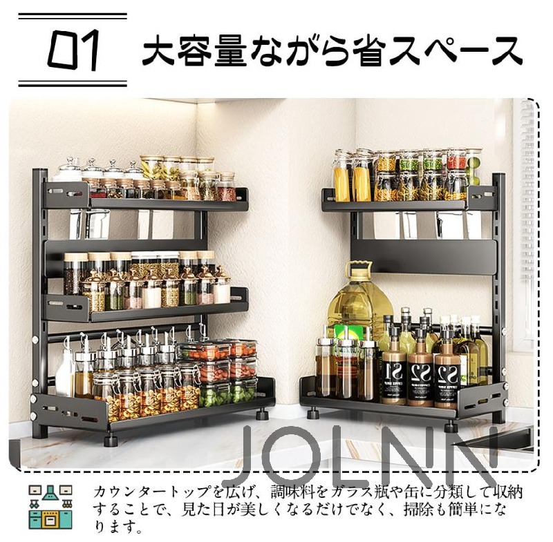 キッチン収納棚 調味料棚 キッチンラッ グレー ブラック 40cm三層 50cm三層