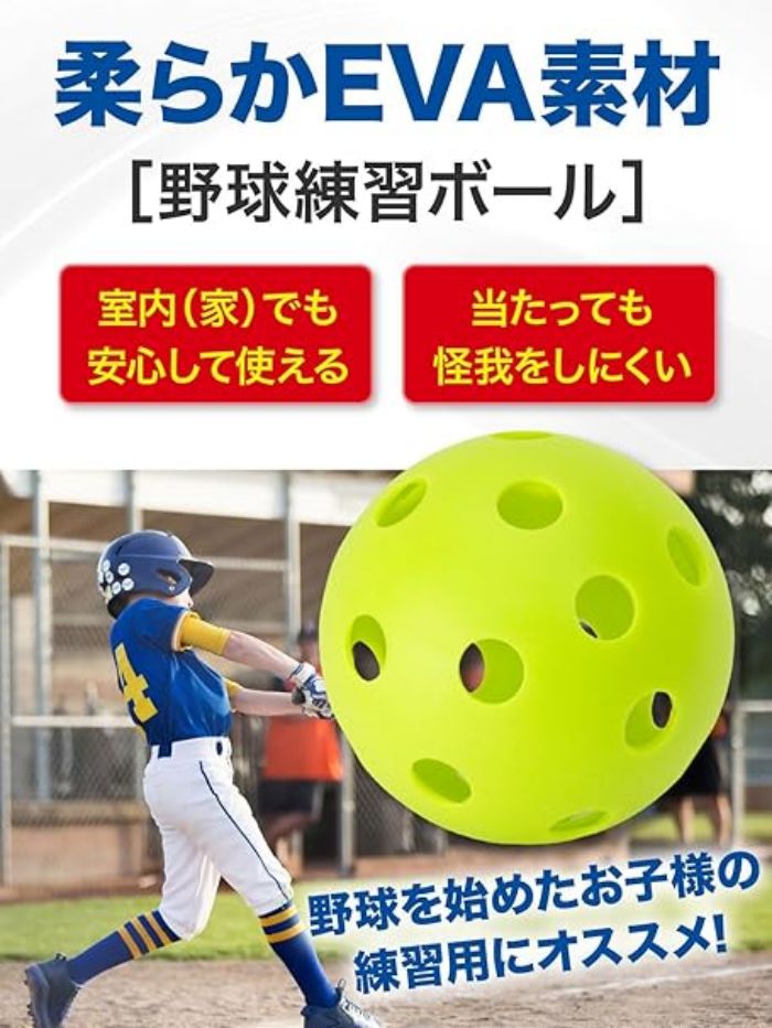 野球 練習用 ボール 穴あきボール バ スポーツ アウトドア 豊富 イエロー オレンジ グリーン ホワイト レッド ライトブルー ブルー 12個セット(袋1枚) 24個セット(袋2枚) 36個セット(袋3枚)