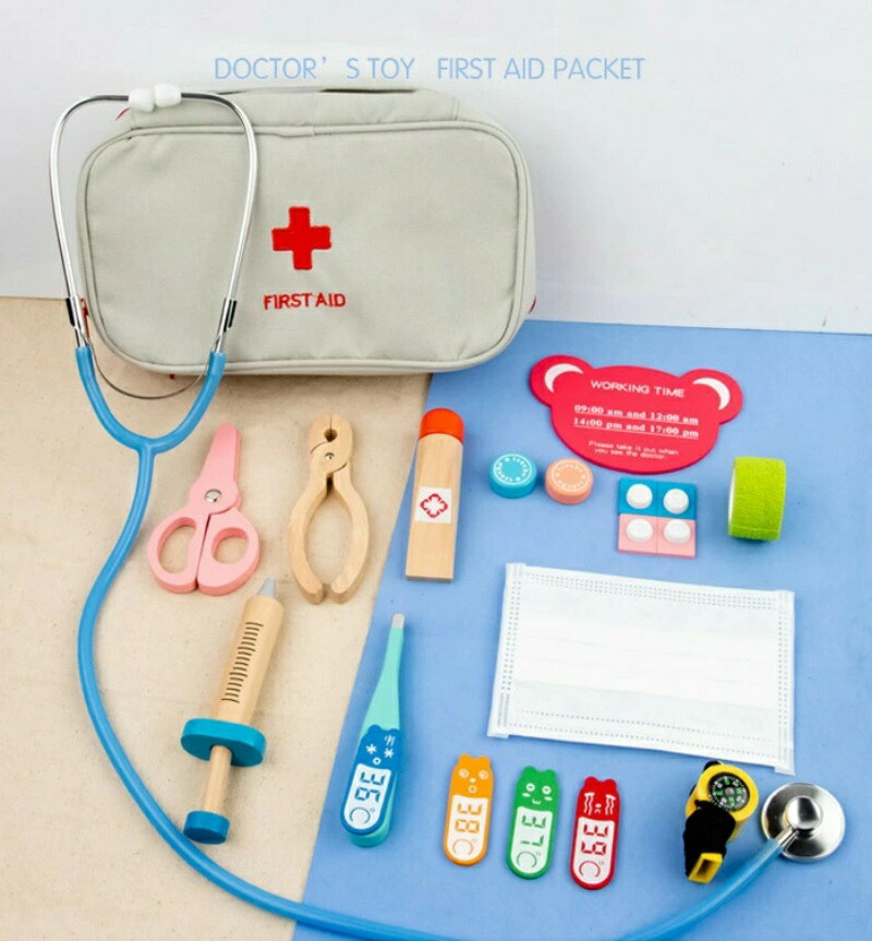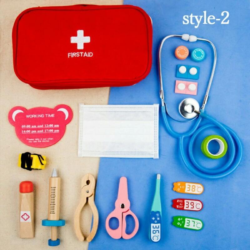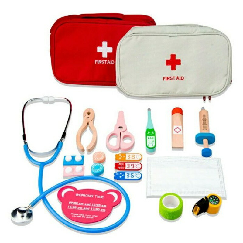 お医者さんごっこセット 15点 医療キ おもちゃ ゲーム 人気 レッド グレー