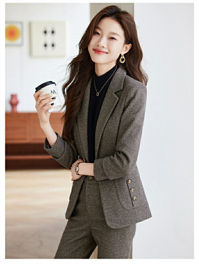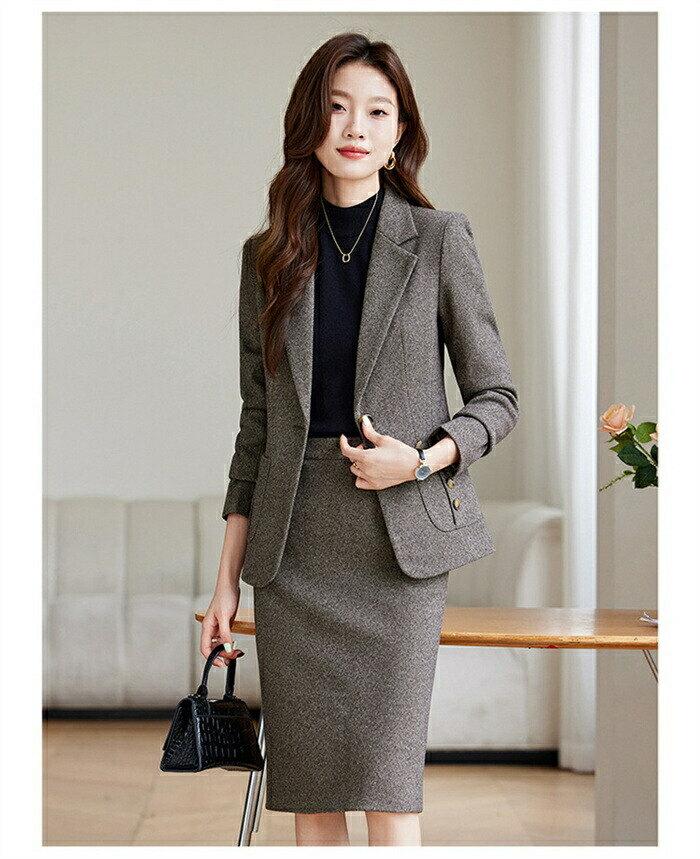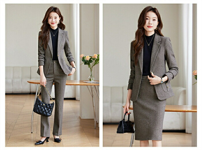 パンツスーツ スカートスーツ レディー スーツ セットアップ パンツスーツ 通販 ブラウン ダークグレー シャケット+パンツ シャケット+スカート