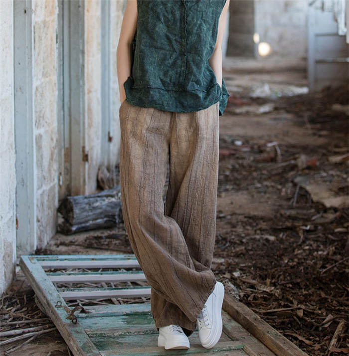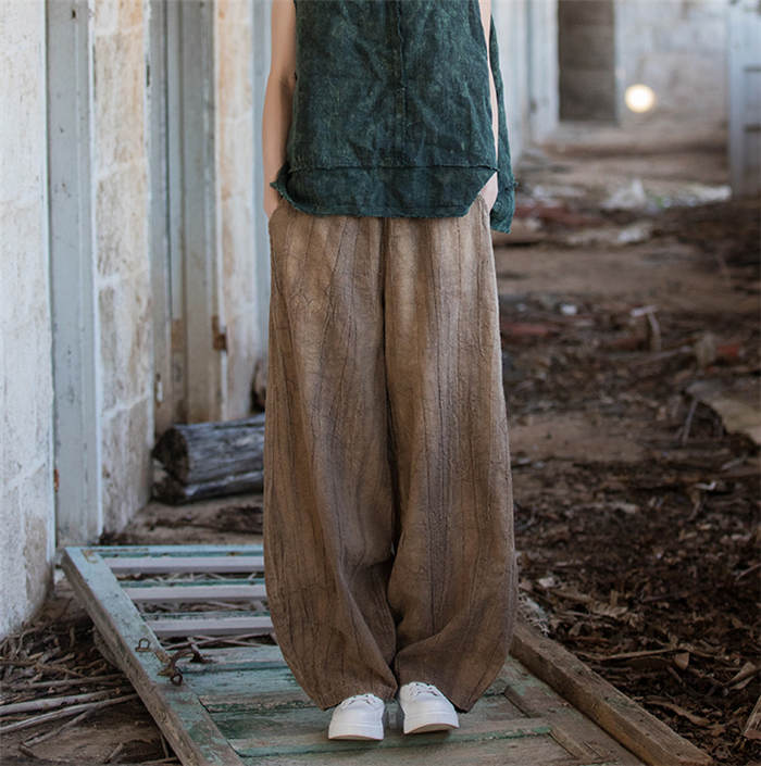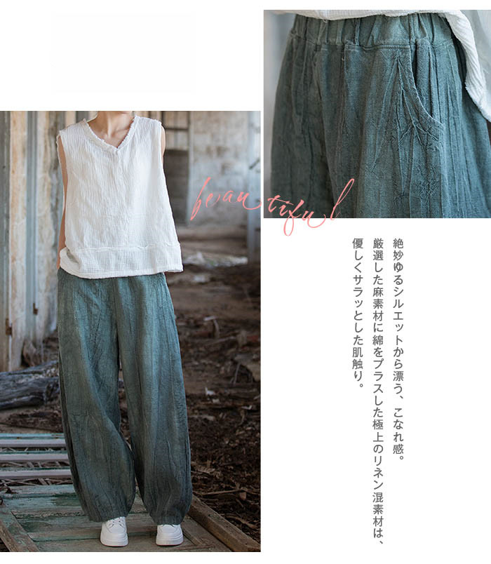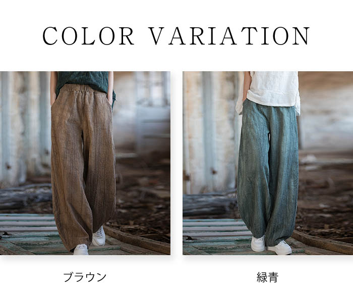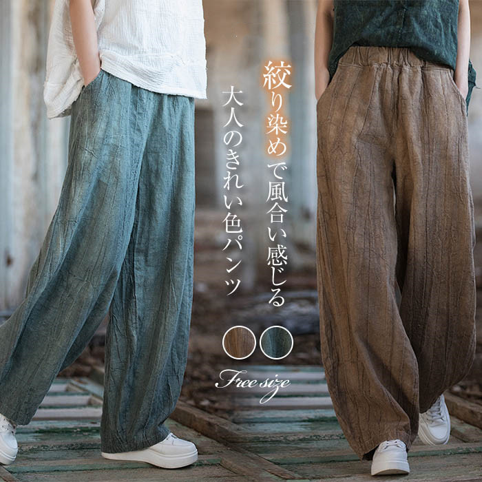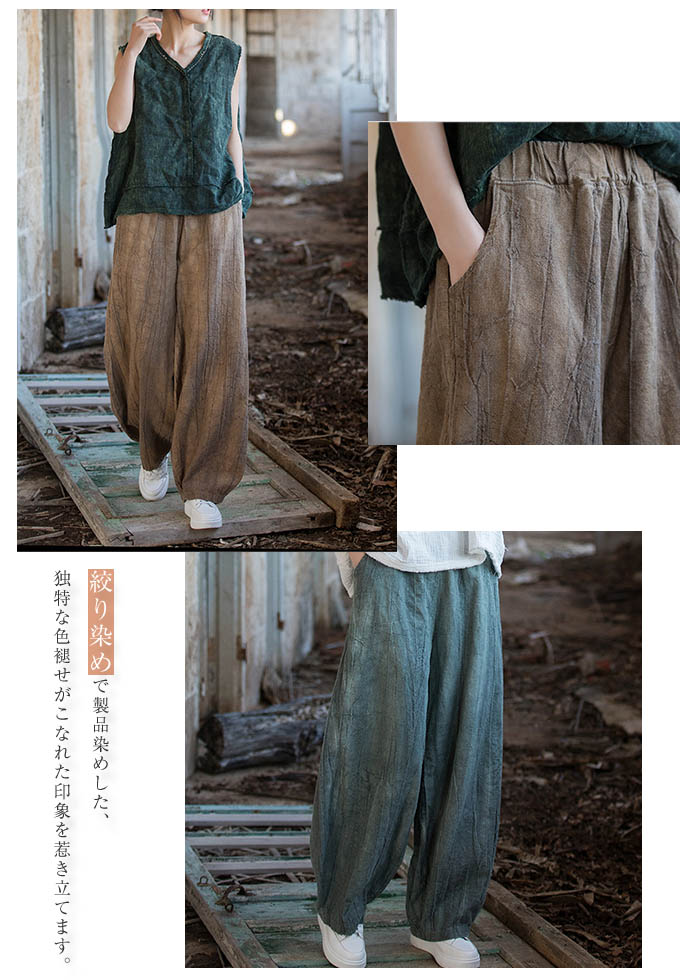絞り染め リネンパンツ レディース サ レディースファッション 超目玉商品 ブラウン 緑青 ダークグレージュ パープル ピンク 黄緑 S M L