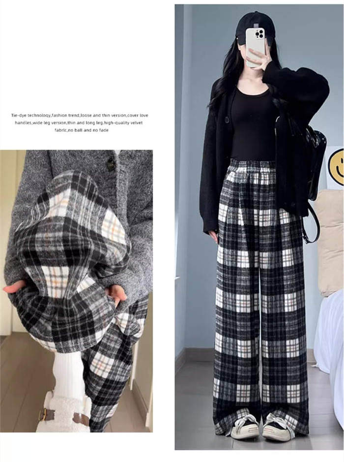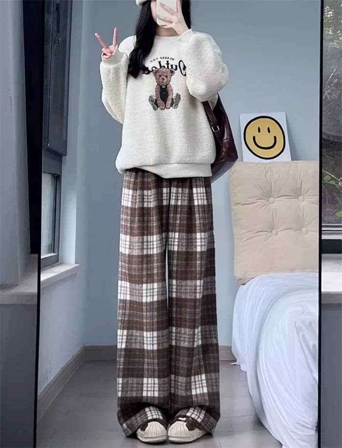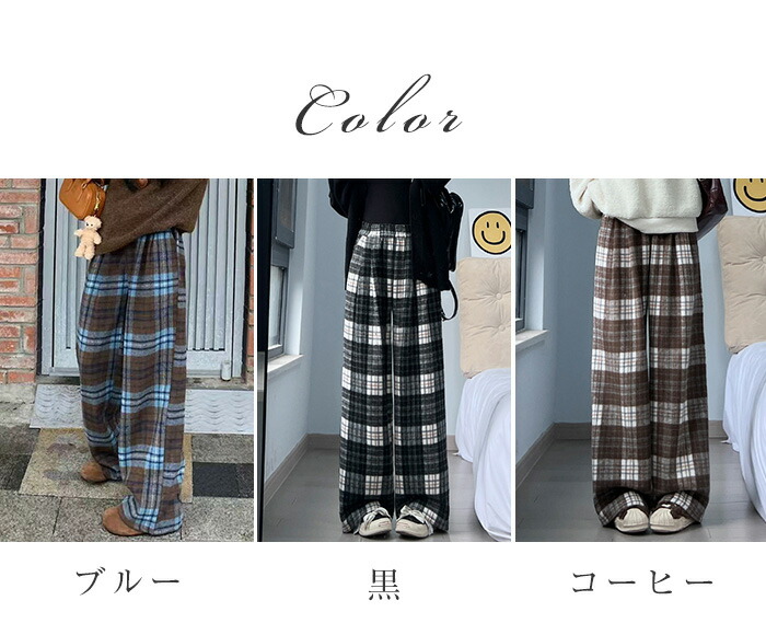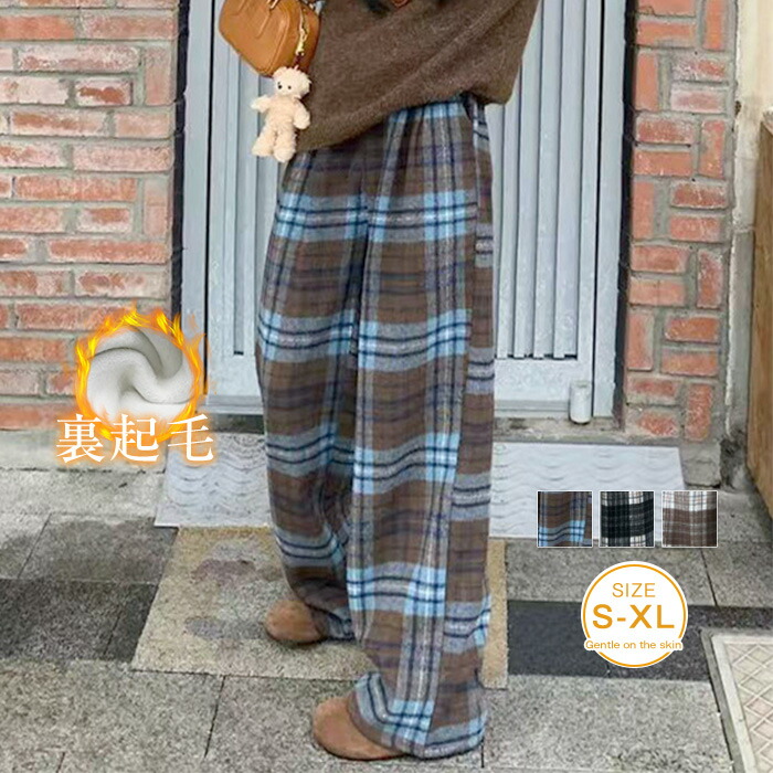 チェック パンツ 裏起毛 秋冬 レディ ボトムス パンツ 新登場! 黒 コーヒー ブルー S M L XL
