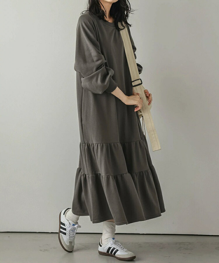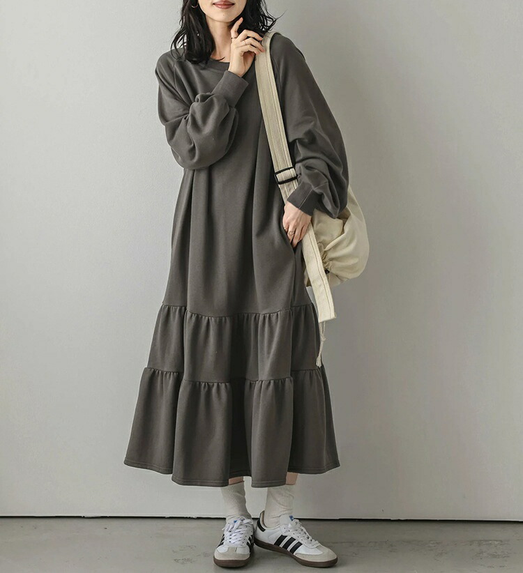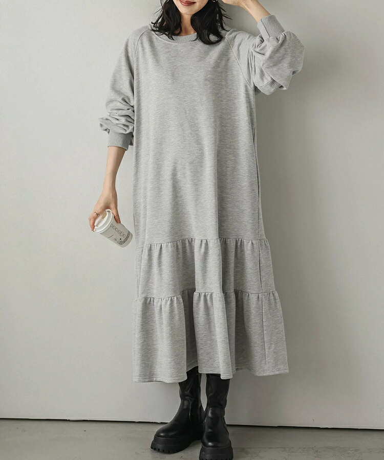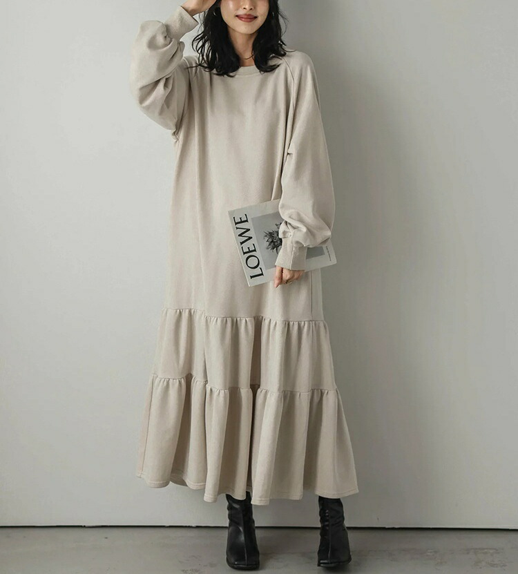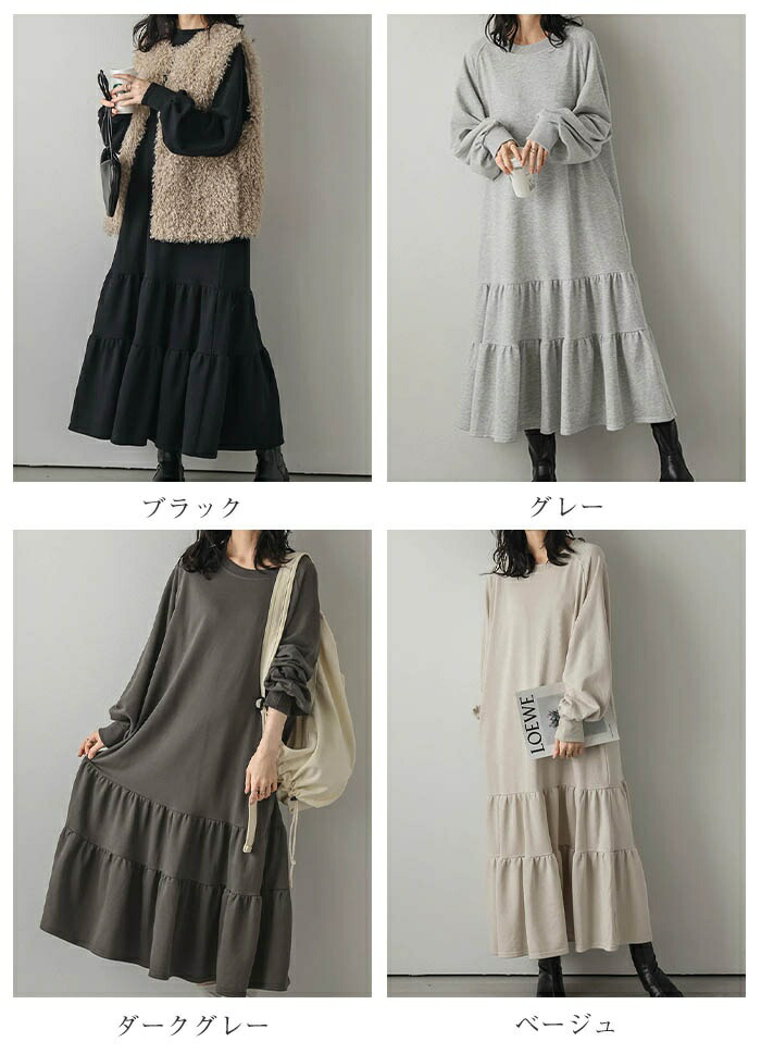 ワンピース ロングワンピース レディー レディースファッション 超目玉商品 ブラック グレー ダークグレー ベージュ M L