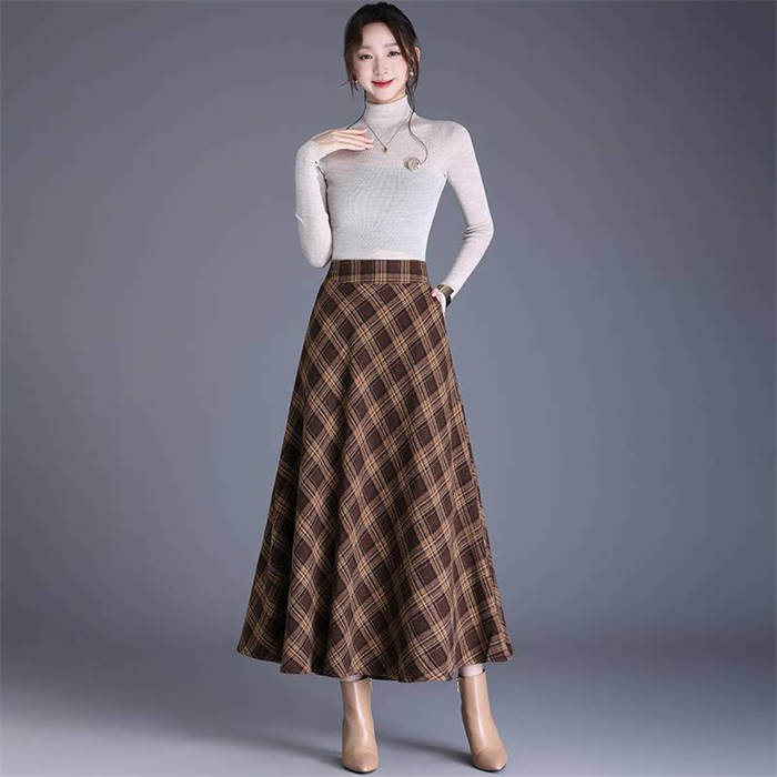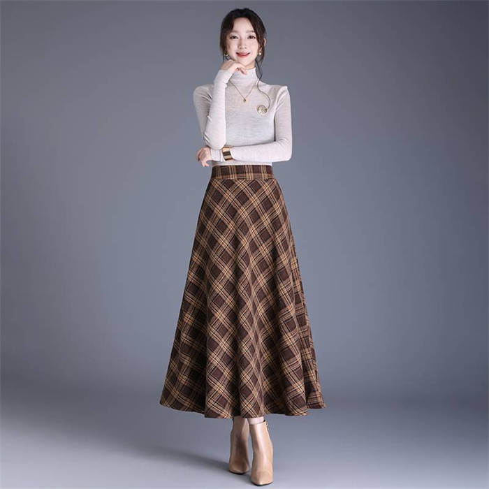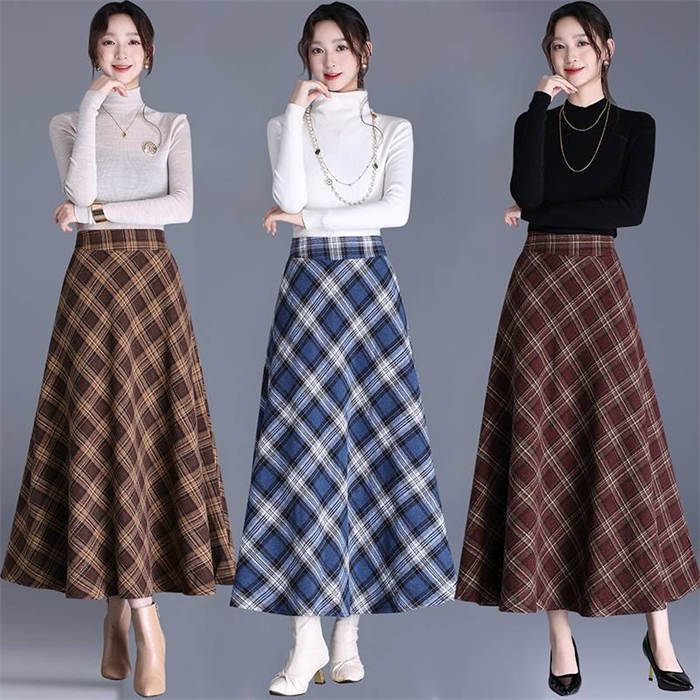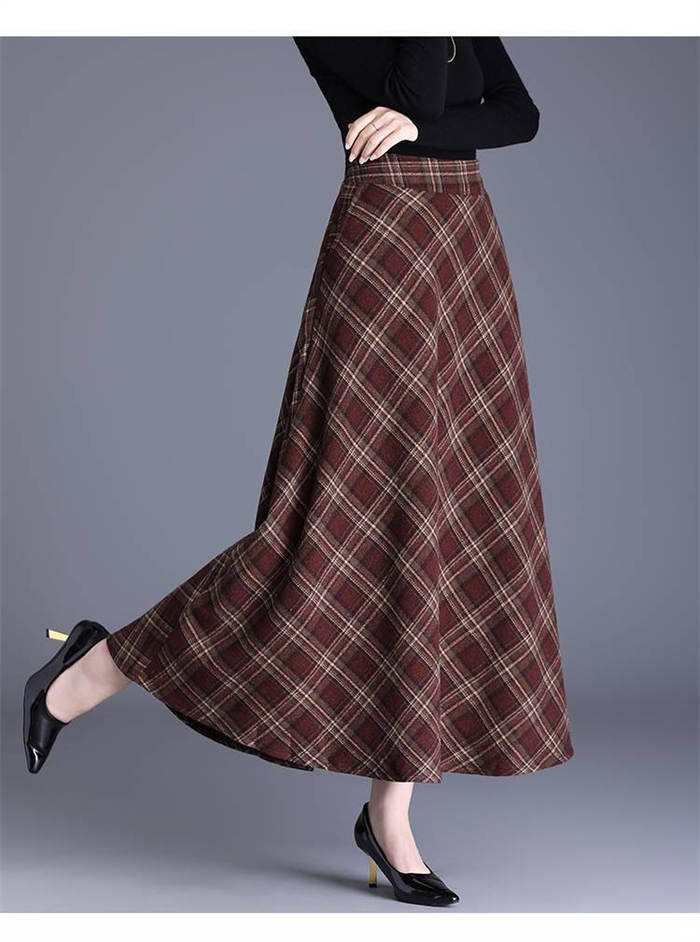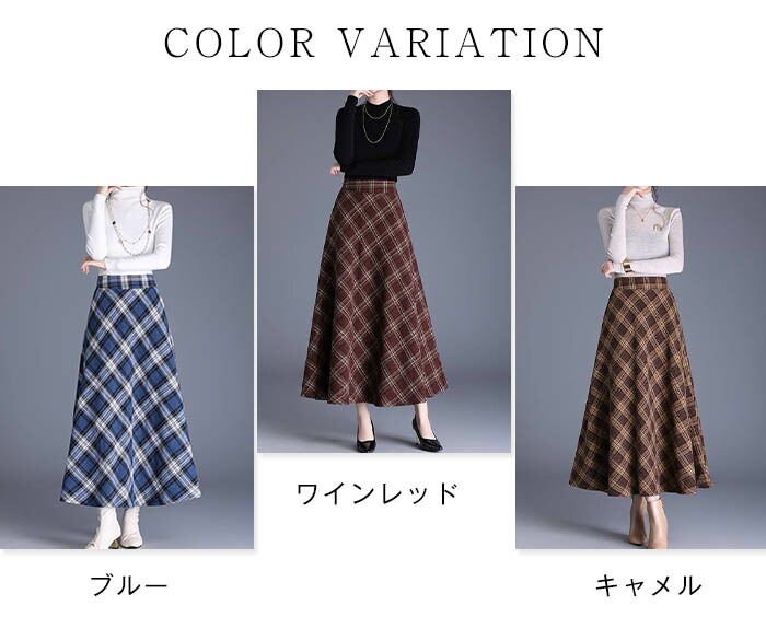 チェック スカート ロング 春 ロング レディースファッション 特集 キャメル ブルー ワインレッド S M L XL 2XL