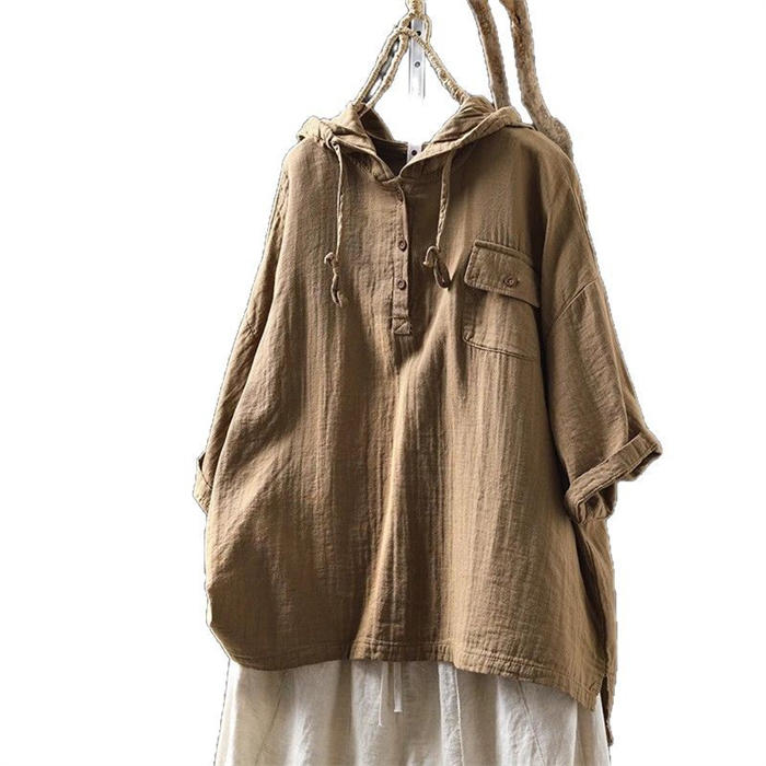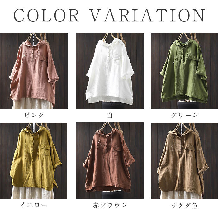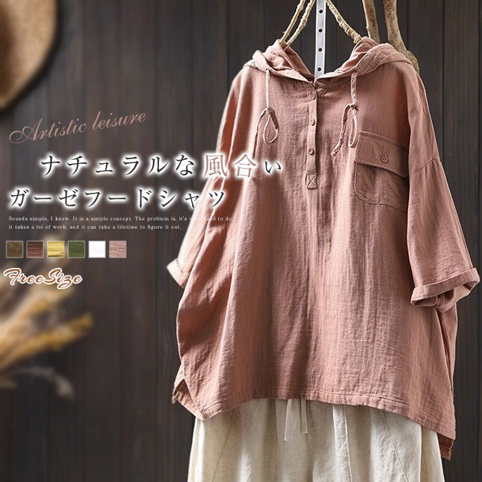 ガーゼ シャツブラウス レディース 半 トップス シャツ ブラウス 続々登場 ピンク 白 グリーン イエロー 赤ブラウン ラクダ色