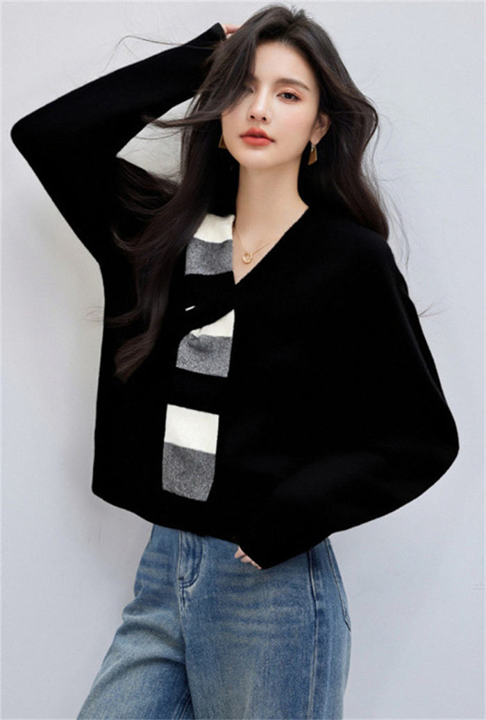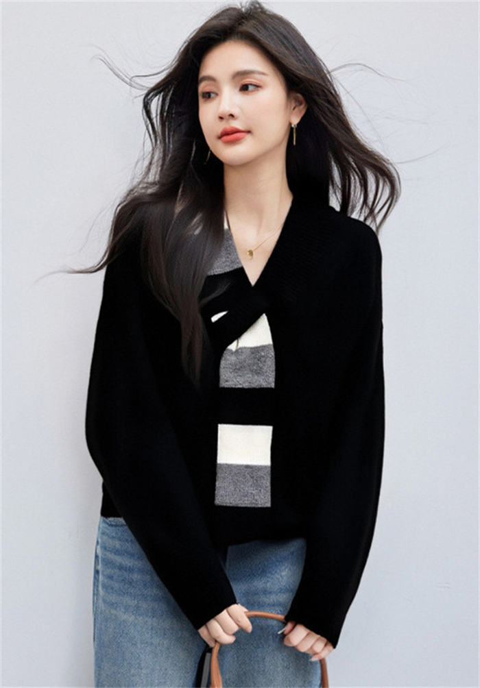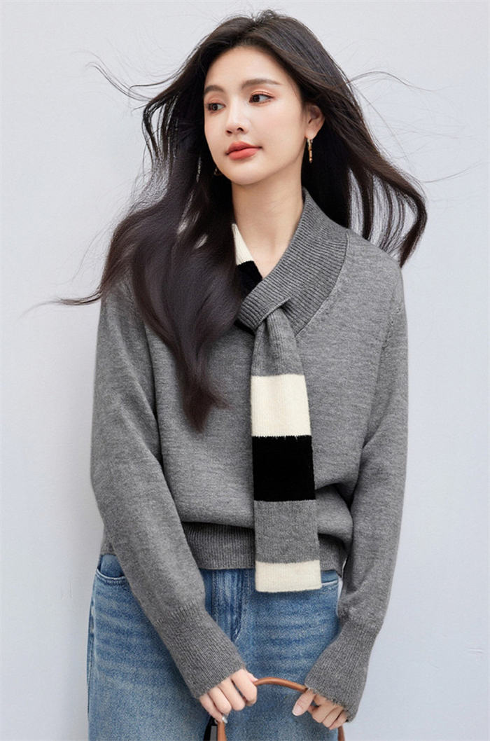 ニット セーター レディース 配色 長 トップス ニット セーター セーター 豊富 グレー 白 黒 S M L