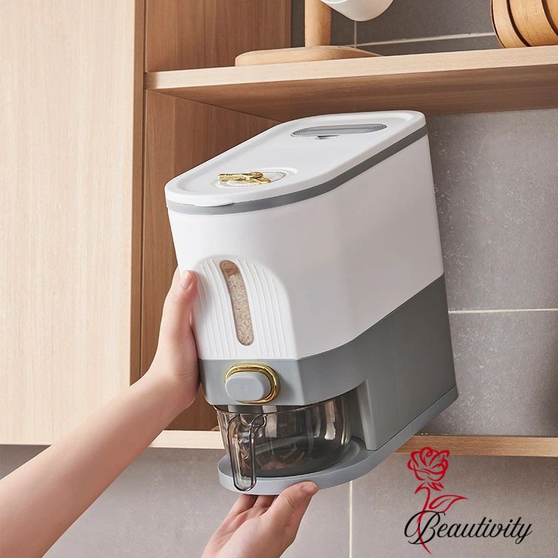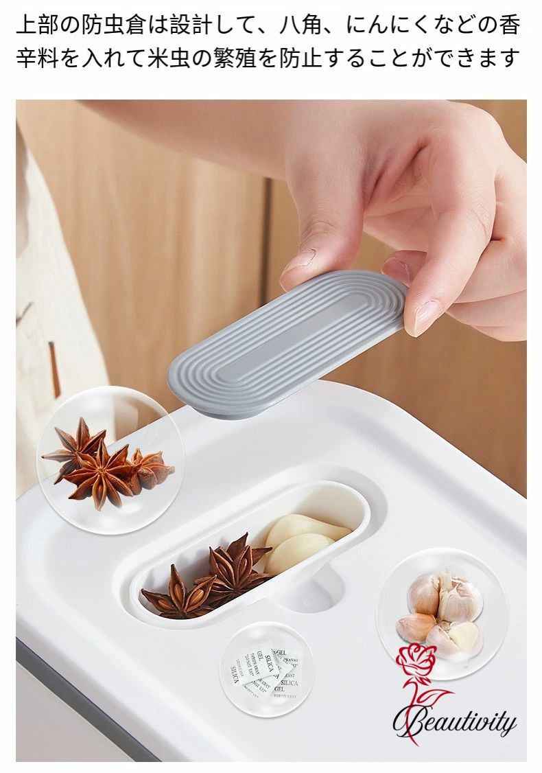 米びつ 米入れ 計量カップ付 ドライフ レディースファッション 新登場! グレー グリーン 透明ホワイト 透明グリーン M:33.5*16.5*29cm L:33.5*16.5*39.5cm