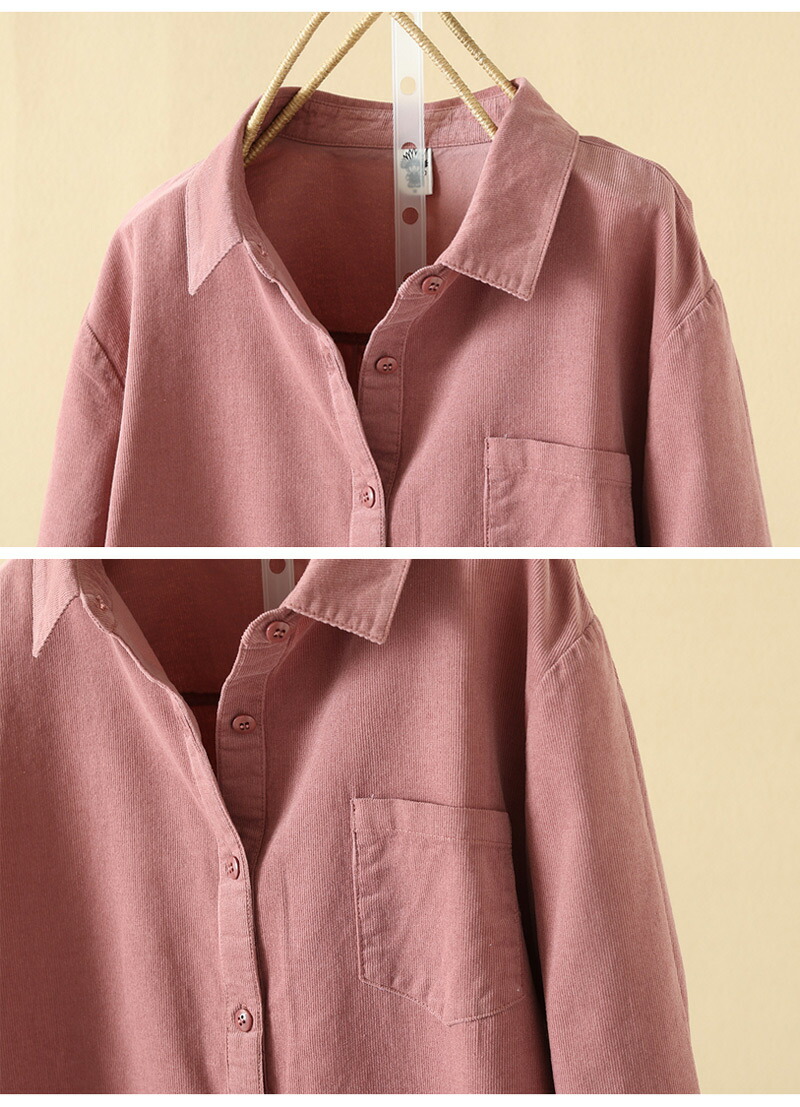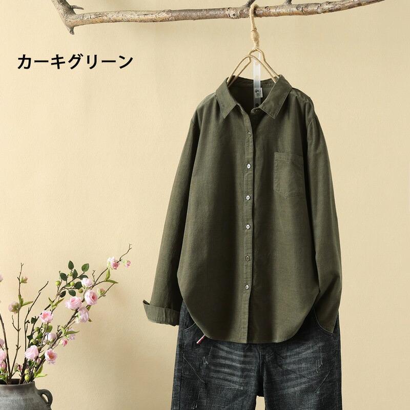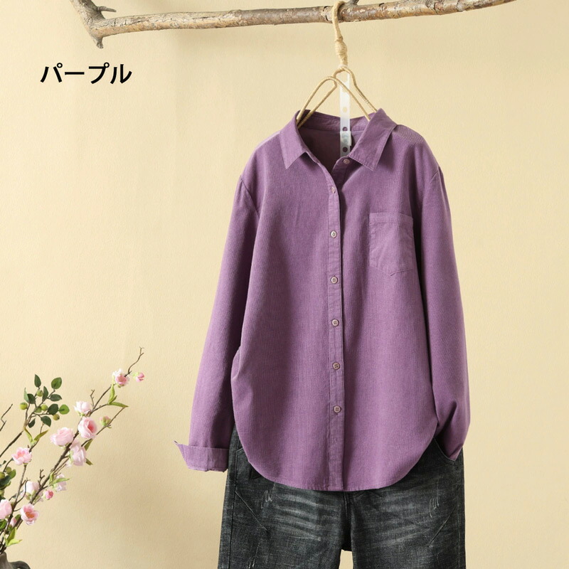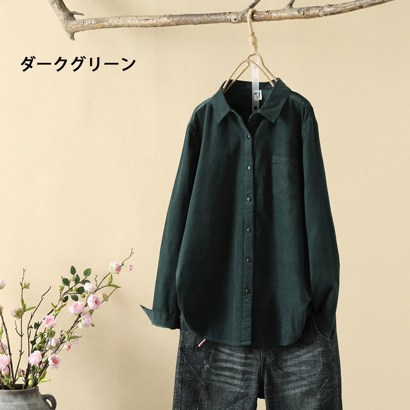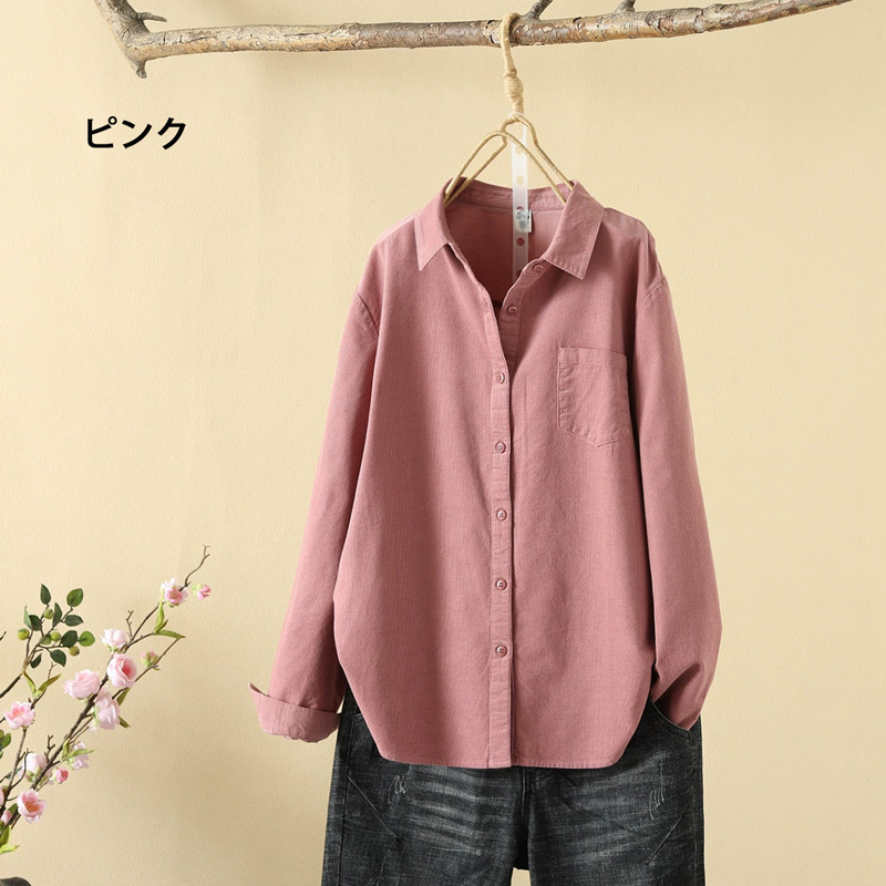 コーデュロイ トップス シャツブラウス レディースファッション 続々登場 M L XL カーキグリーン コーヒー ピンク パープル ダークグリーン ダークレッド