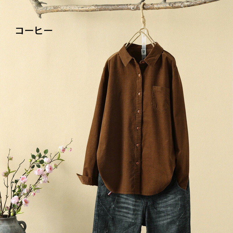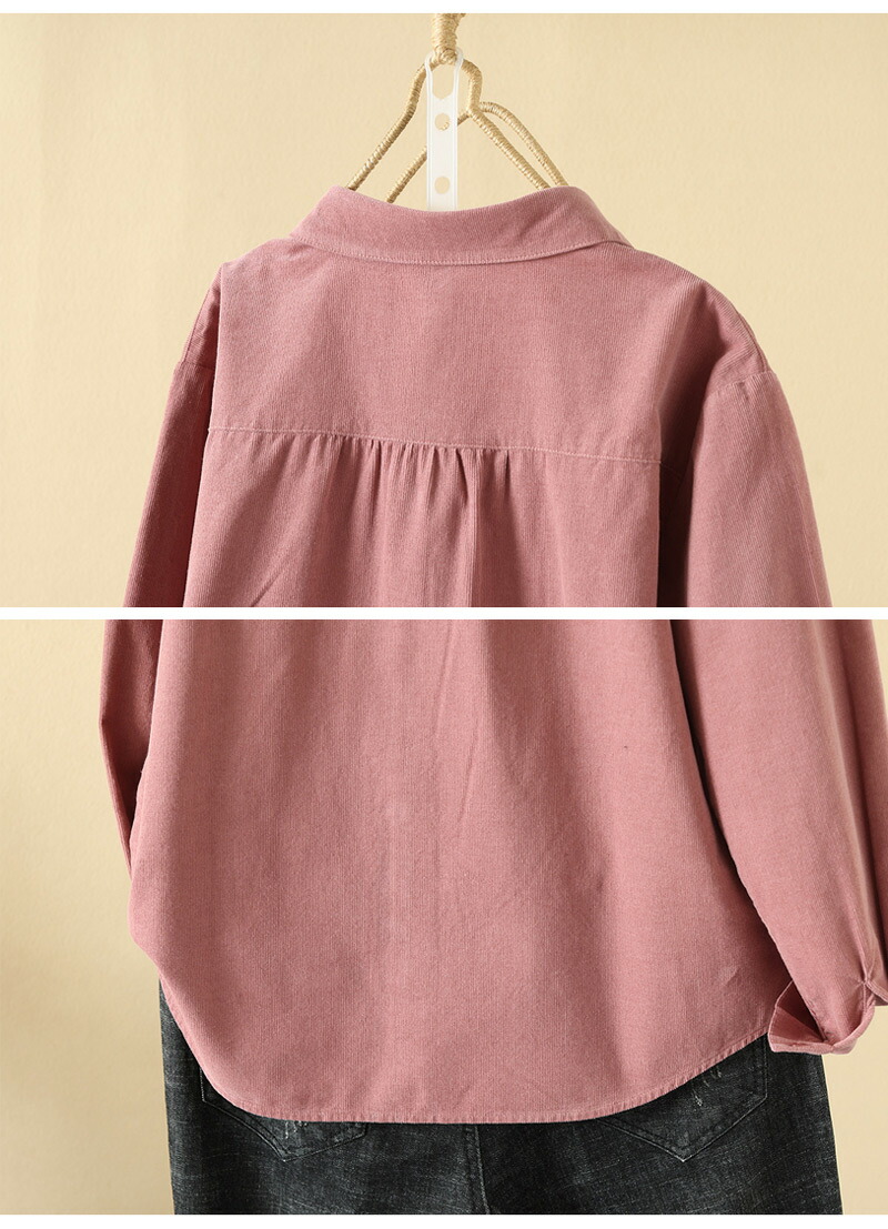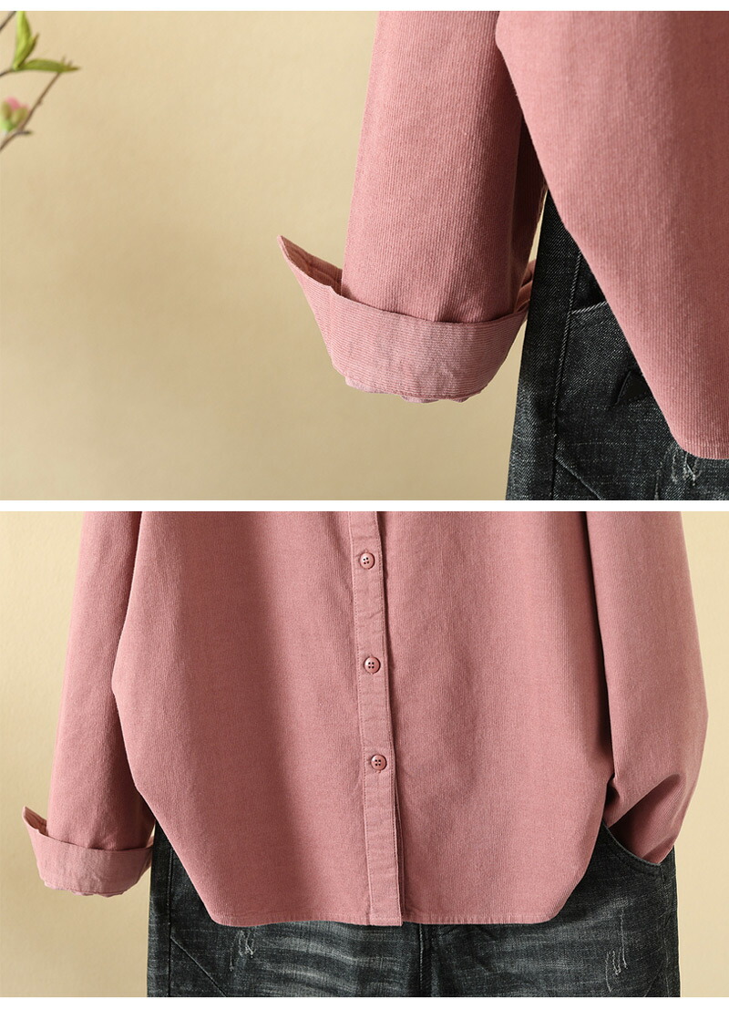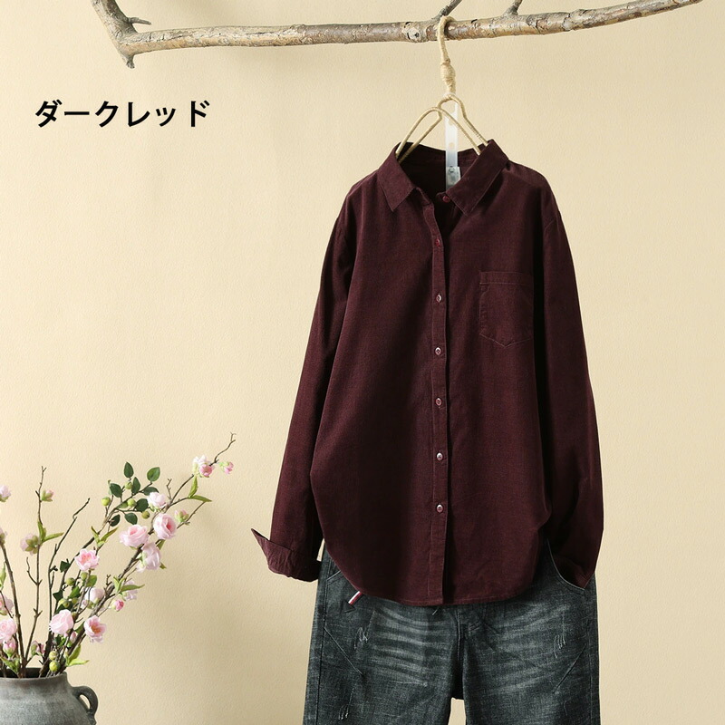 コーデュロイ トップス シャツブラウス レディースファッション 続々登場 M L XL カーキグリーン コーヒー ピンク パープル ダークグリーン ダークレッド
