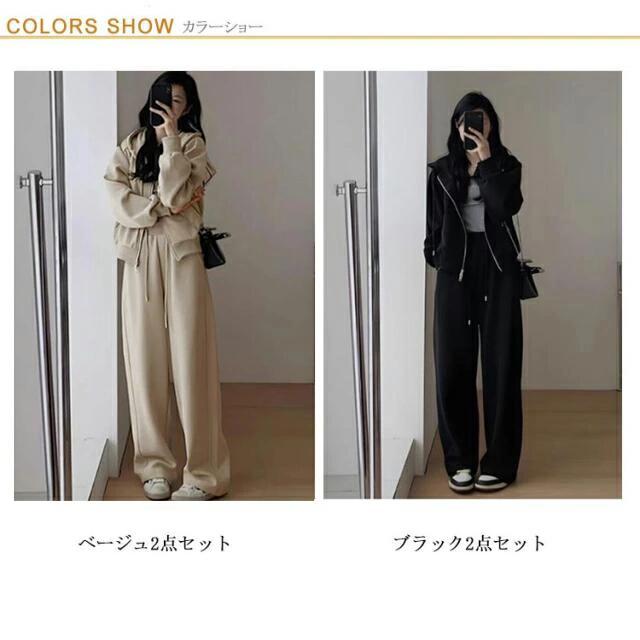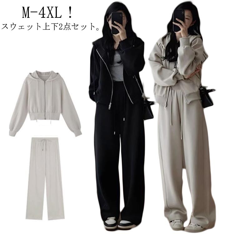 スウェット セットアップ パーカー ワ スーツ セットアップ パンツスーツ 特集 ベージュ2点セット ブラック2点セット M L XL 2XL 3XL 4XL