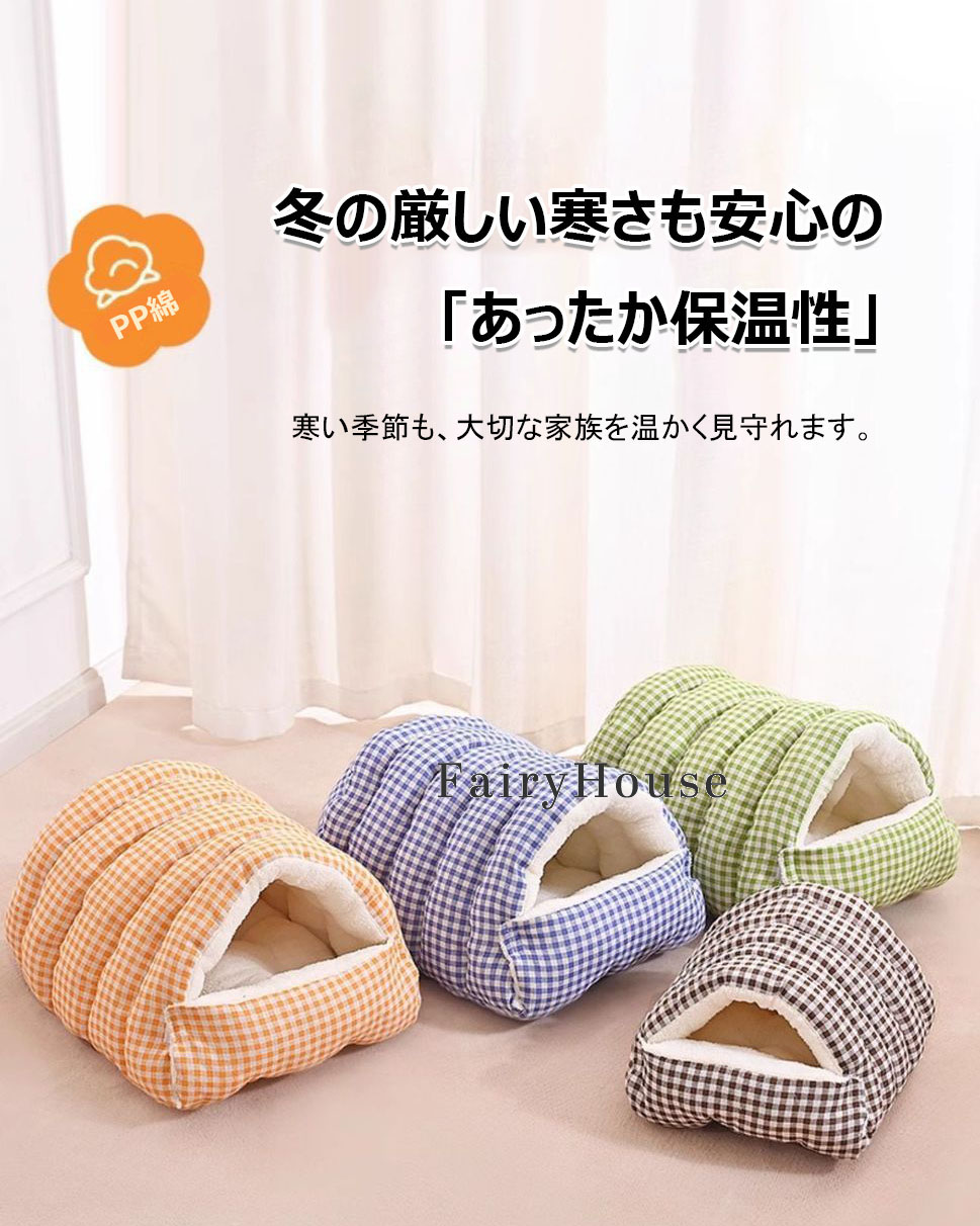 ペットベッド ドーム チェック柄 ペッ ペット ペットグッズ 人気 ブルー グリーン イエロー グレー 【31×30×20cm 約】 【42×40×28cm 約】