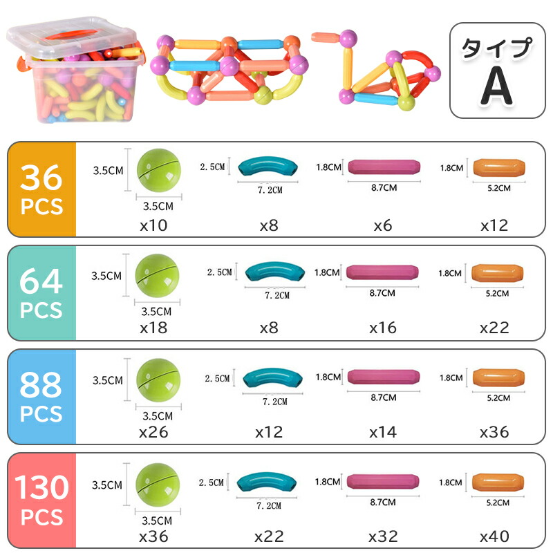 マグネットブロック モンテッソーリ お おもちゃ ベビー向けおもちゃ おしゃぶり はがため 豊富 36pcs 64pcs 88pcs 130pcs