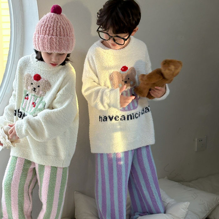 子供パジャマ ルームウェア 子供 パジャマセット 2点セット セットアップ キッズ 男女兼用 もこもこ ふわふわ 春秋冬 厚手 長袖 部屋着 室内 女の子 男の子 おしゃれ ゆったり 可愛い 柔らかい