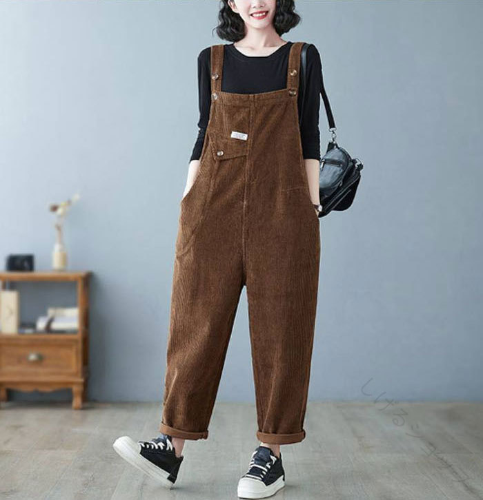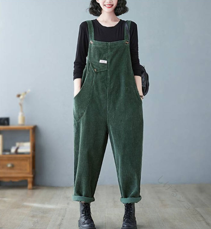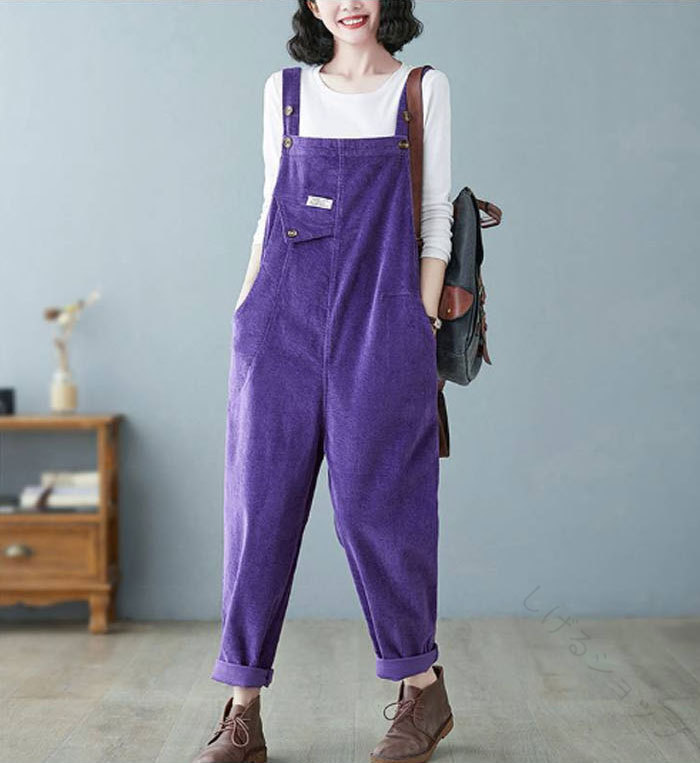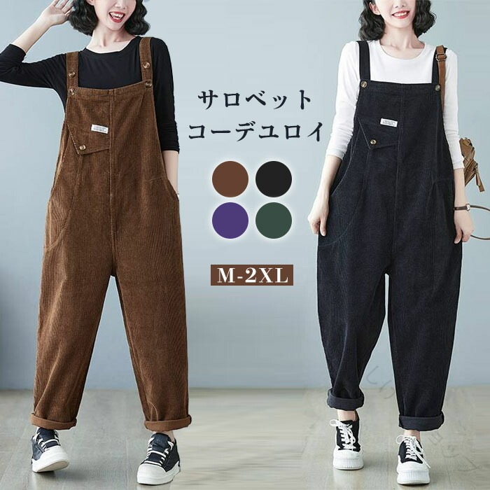 サロペット コーデュロイ 無地 パンツ レディースファッション 早い者勝ち ブラック グリーン ブラウン パープル M L XL 2XL