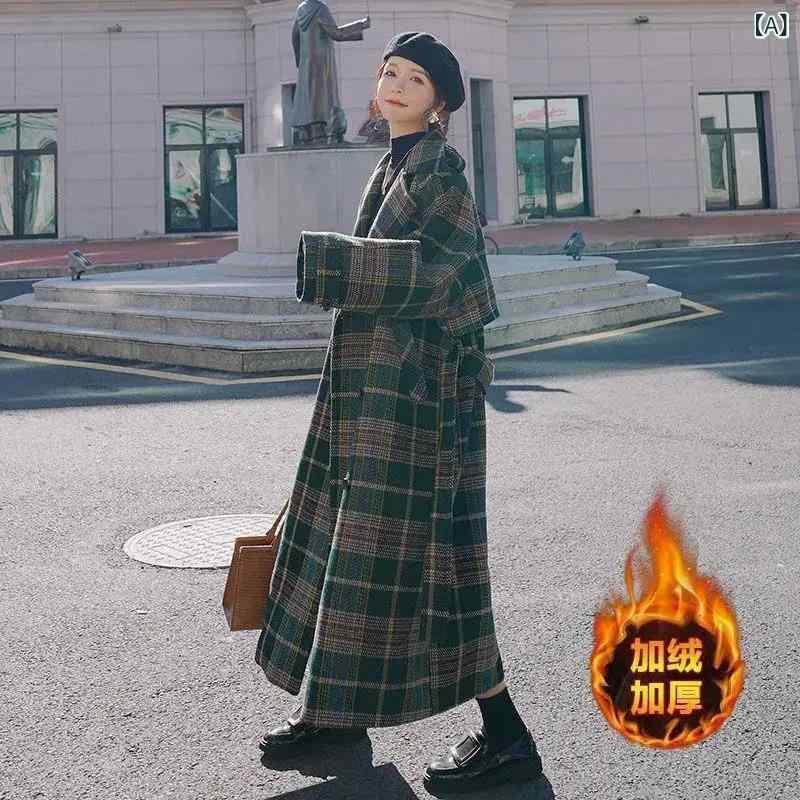 コート レディース 秋冬 厚手 ウール ロング丈 ゆったり 大きめサイズ レトロ チェック柄 グレージュ系 ブラウン系 菱形