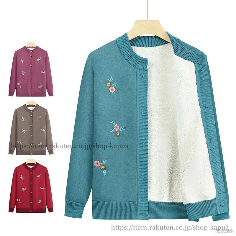シニアファッション レディース 80代 70代 60代 90代 秋冬 刺繍 花柄 カーディガン シニア 普段着 ニット