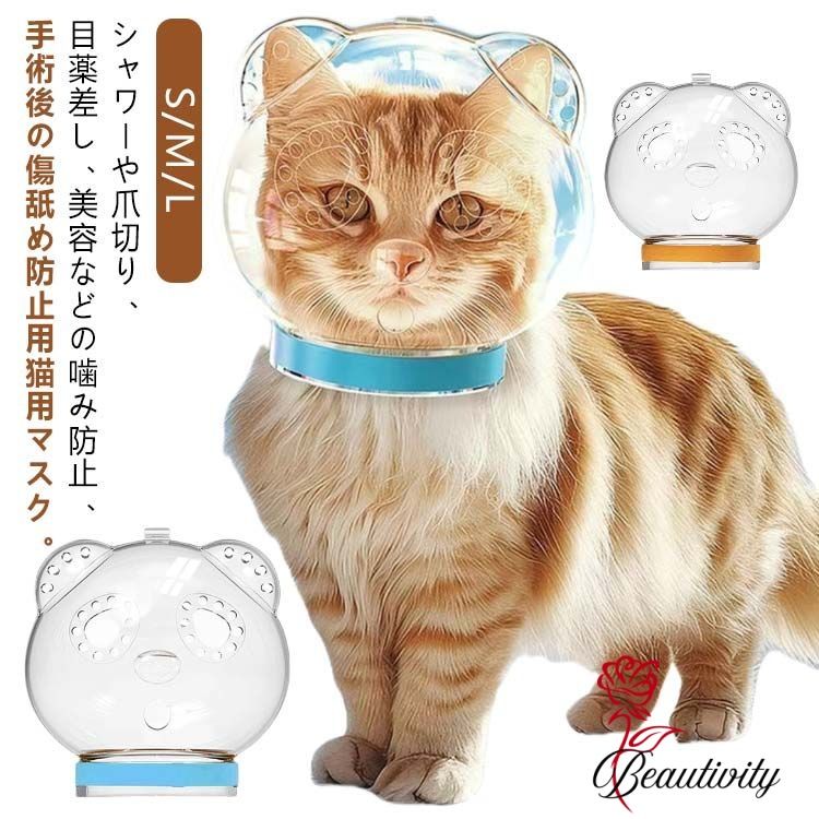 猫 爪切り 口輪 猫用マスク 透明 通気性 爪切り補助具 猫用品 シャワー 美容 噛みつき防止 拾い食い防止 耳付き かわいい 宇宙ヘッドギア口輪 ネコ エリザベスカラー キャットマスク 猫の爪 ねこ
