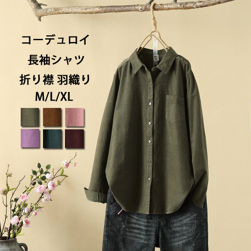 長袖シャツ レディース コーデュロイ シャツ トップス ブラウス 長袖 折り襟 羽織り シャツブラウス シンプル カジュアル 秋物 春 秋 冬 20代 30代 40代 50代