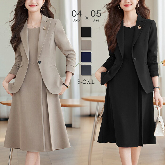 スーツ ワンピーススーツ レディース スーツセット フレアワンピース ビジネススーツ 上下セット フォーマル 上品 入学式 洗える ジャケット aラインワンピース オフィス 長袖 エレガン 2点セット