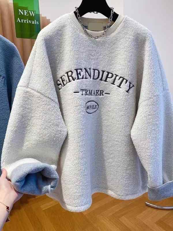 スウェット レディース 韓国風 トップス 秋冬 刺繡ロゴ入り プルオーバー ゆったり 長袖 ラウンドネック ブルー 大きめサイズ 普段使い 杏色