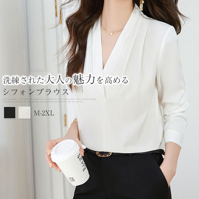 vネック シャツ ブラウス レディース スーツブラウス 長袖 レディースブラウス 無地 シャツブラウス シフォン 七五三 ママ スーツインナー 入学式 卒業式 インナー 大人 お洒落 フォーマ タック