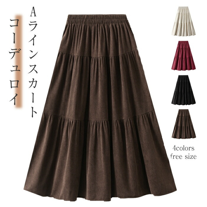 限定クーポンで2480円 コーデュロイ スカート レディース ティアードスカート Aラインスカート コーデュロイスカート Aライン フレア ロングスカート ボトムス ウエストゴム 春 フレアスカート