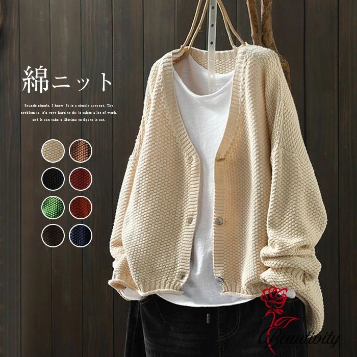 ニットカーディガン レディース 長袖 コットンニットカーディガン カーディガン ニット ゆるカーディガン ニットカーデ 羽織り 秋 大人カジュアル 大人可愛 春
