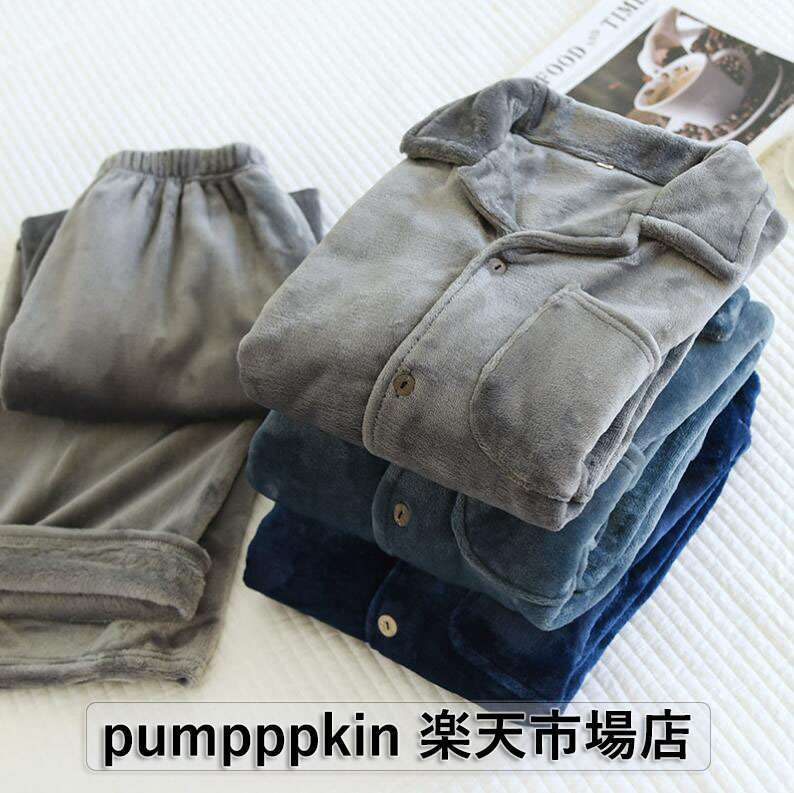 上下2点セット あったかい パジャマ メンズ 秋冬 厚手 ルームウエア 無地 起毛 フランネル パジャマ 部屋着 寝間着 前開き 長袖 男性 パジャマセット