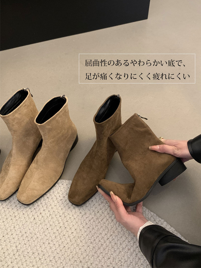 美脚ブーツ!バックファスナー付き着脱ぐやい!シンプルでいて女らしい綺麗めシルエットのショートブーツ! ゆったり クッション 滑り止め 保温 レザー 冬ブーツ 秋 チェルシーブーツ